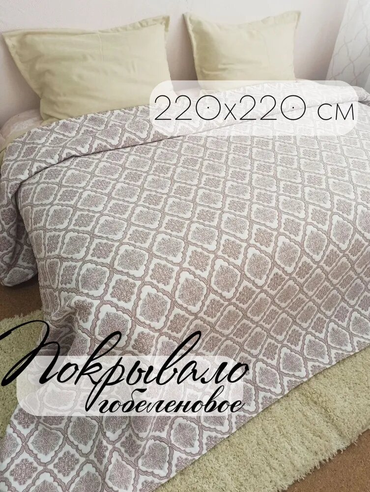 Покрывало Кружева, Гобелен Ромб, бежево-белый с размерами: 220х220 см интересное: