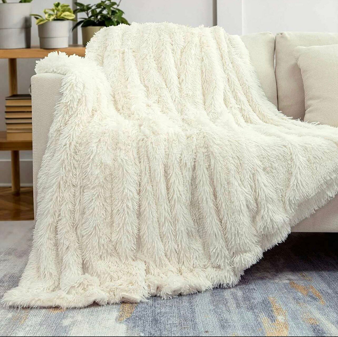 Купить Пушистый плед с длинным ворсом 200 на 220 см. Цвет Молочный
