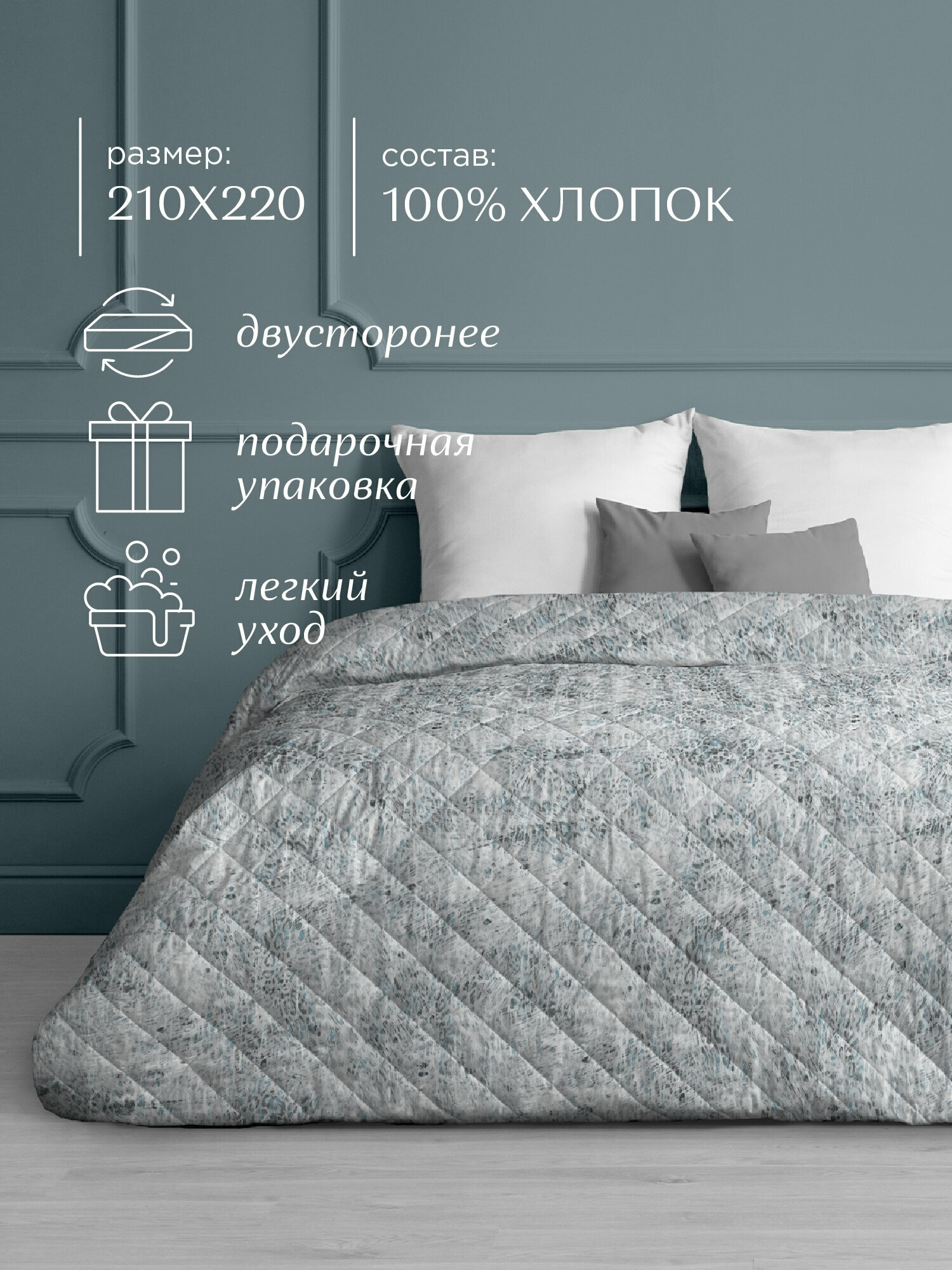 Покрывало стеганое "Унисон" 210х220 "Point" 27001-1 / плед-покрывало
