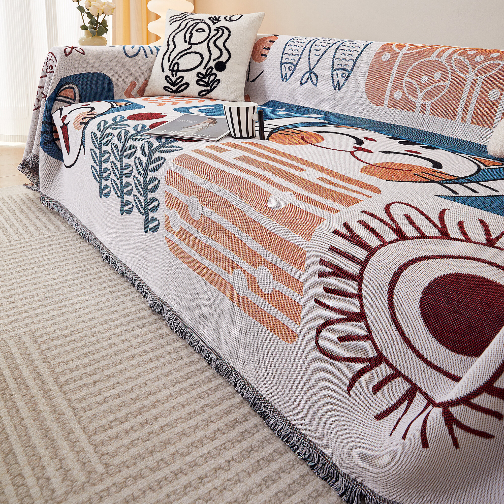 Купить покрывало на диван, плед для пикника, пляжное покрывало, плед хлопковый / полиэстер, современное покрывало для дивана в стиле INS с котята, размер 90X180