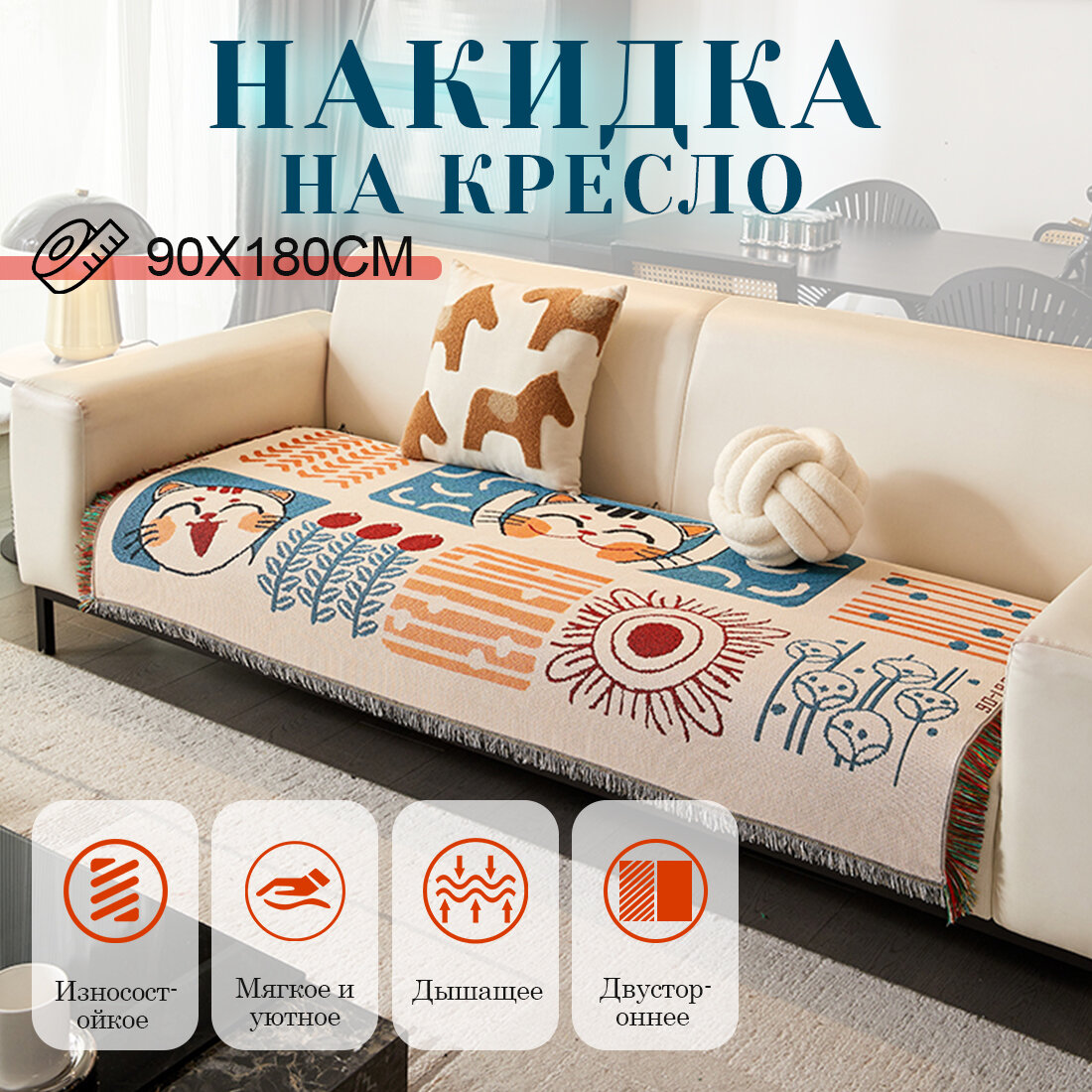 покрывало на диван, плед для пикника, пляжное покрывало, плед хлопковый / полиэстер, современное покрывало для дивана в стиле INS с котята, размер 90X180 интересное: