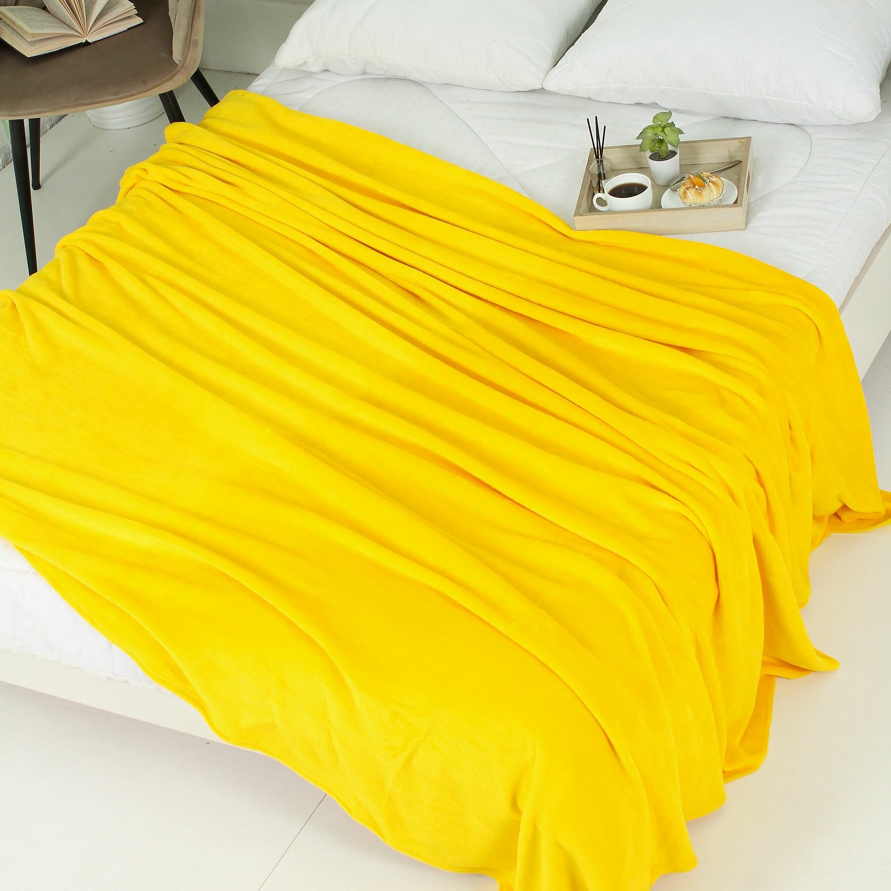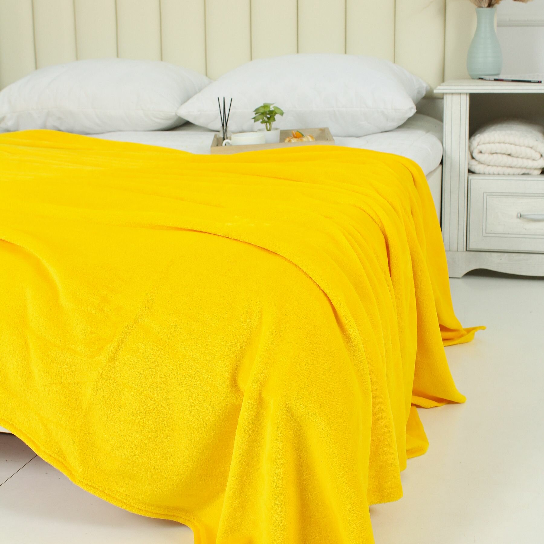 Плед 200х200 на диван однотонный желтый интересное:
