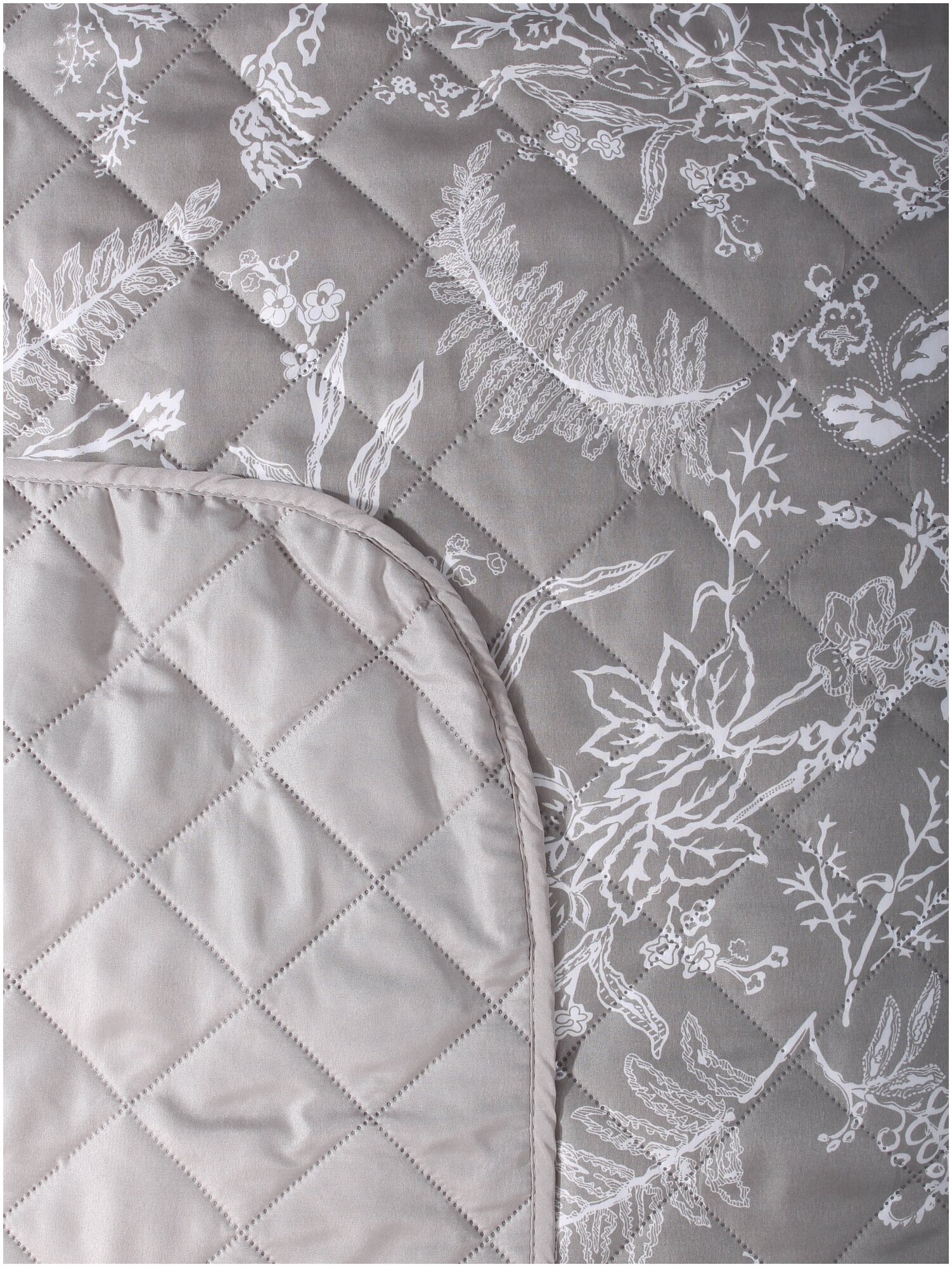 Покрывало 200х220 см Melissa Ботаник двустороннее стеганое серо-бежевое (509171/5) интересное:
