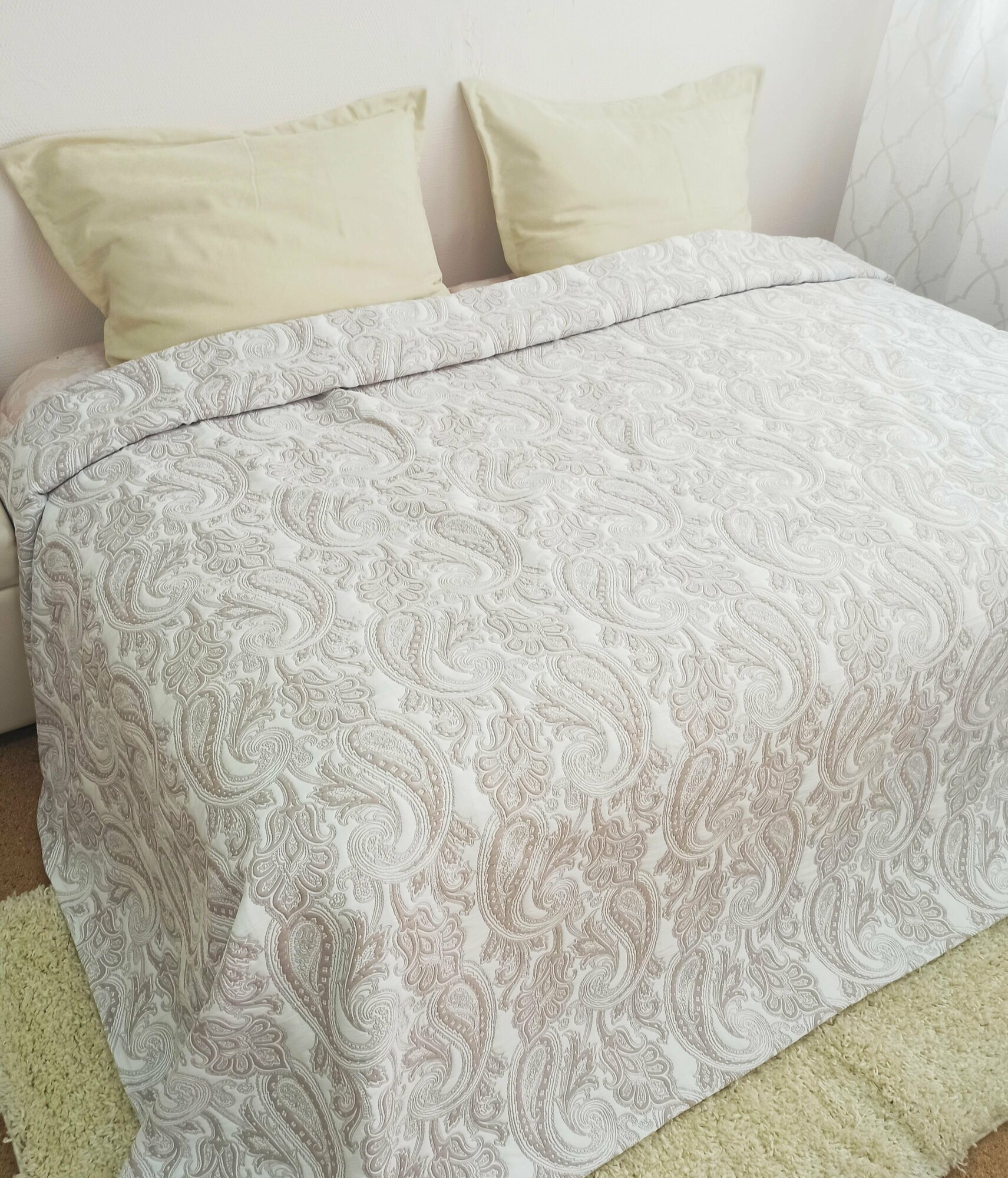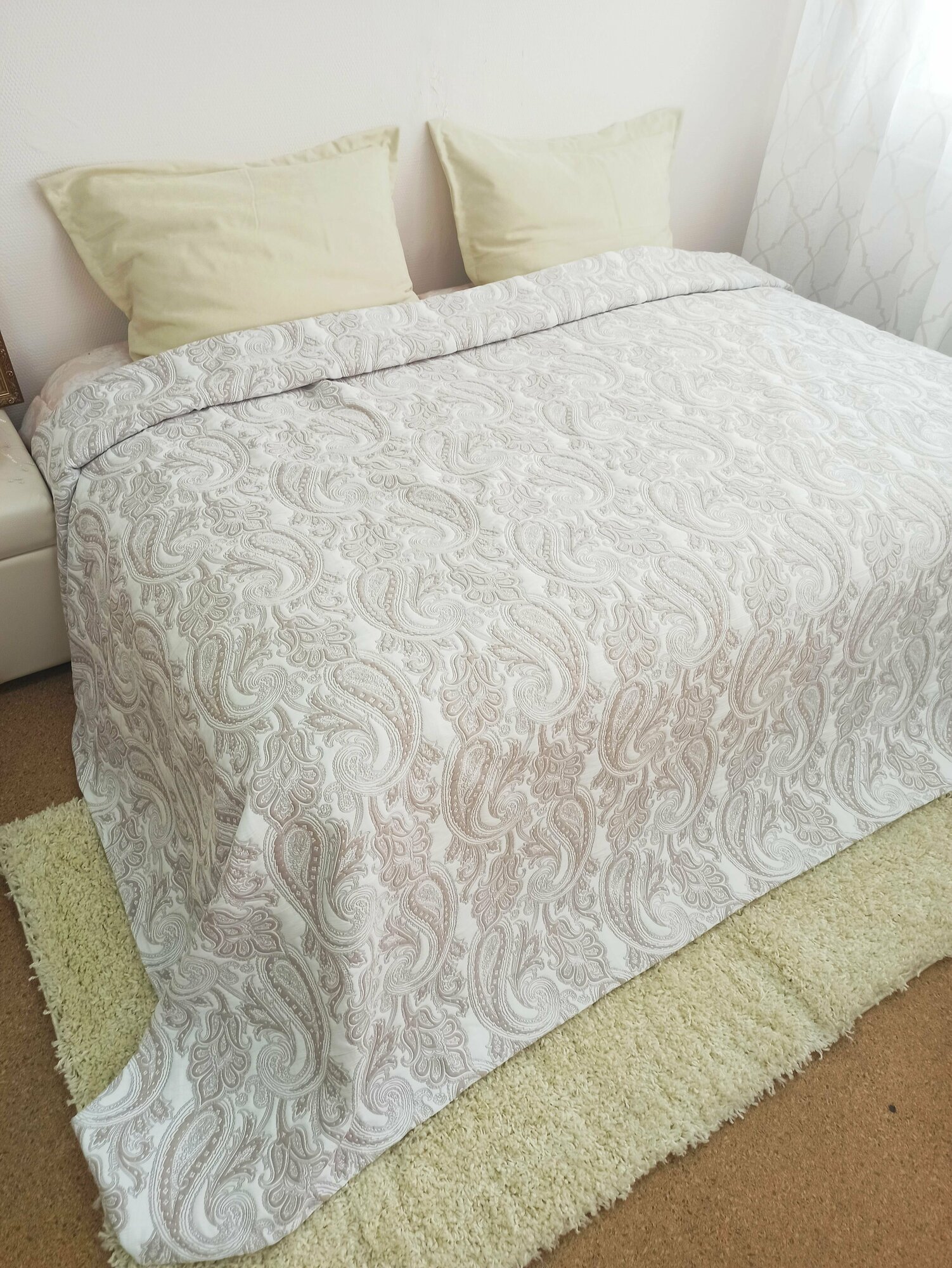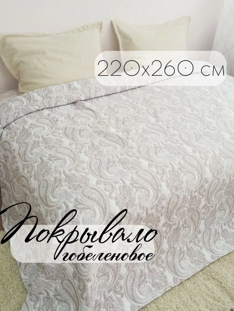 Покрывало Кружева, Гобелен Индия, белый, светло-серый с размерами: 220х260 см интересное: