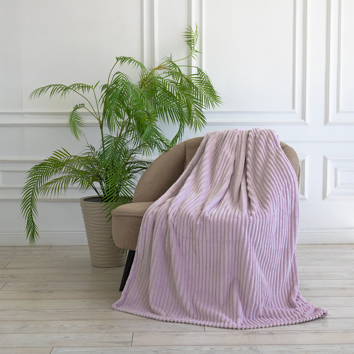 Купить Плед Happy Family 180*220 см, плед - покрывало двуспальное, плюшевый пушистый ворс велсофт Волна лиловый
