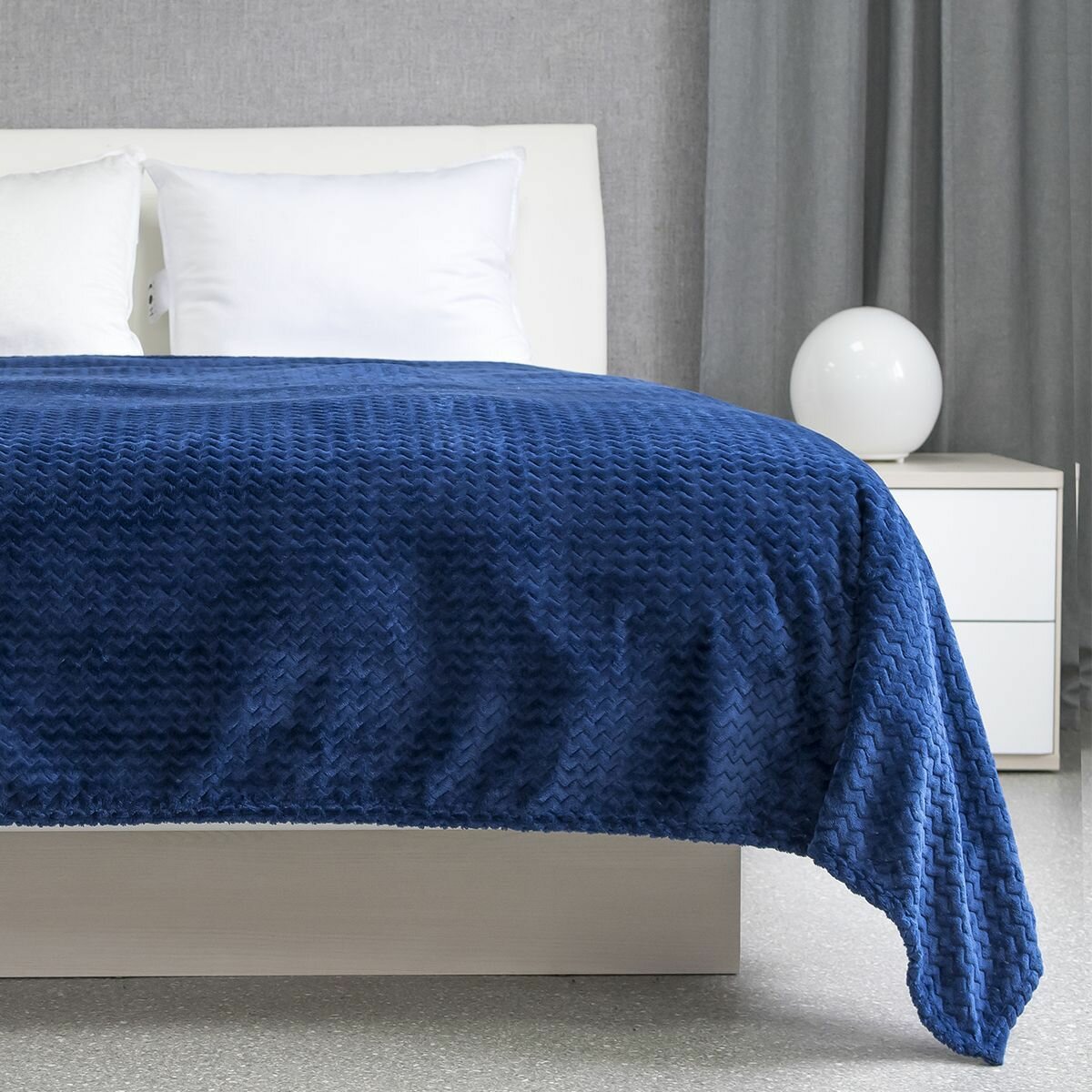 Купить Плед покрывало велсофт 160х200 волна Синий / на кровать / на диван / на кресло / детский / мягкий