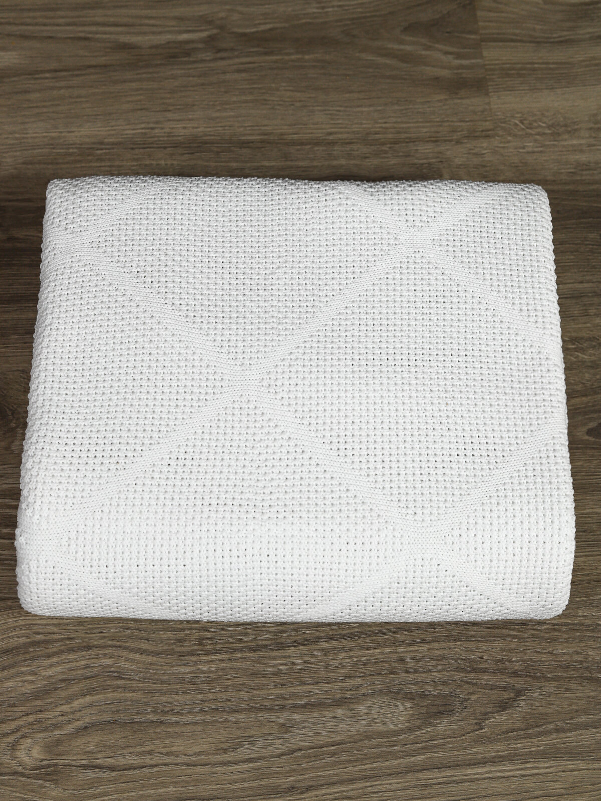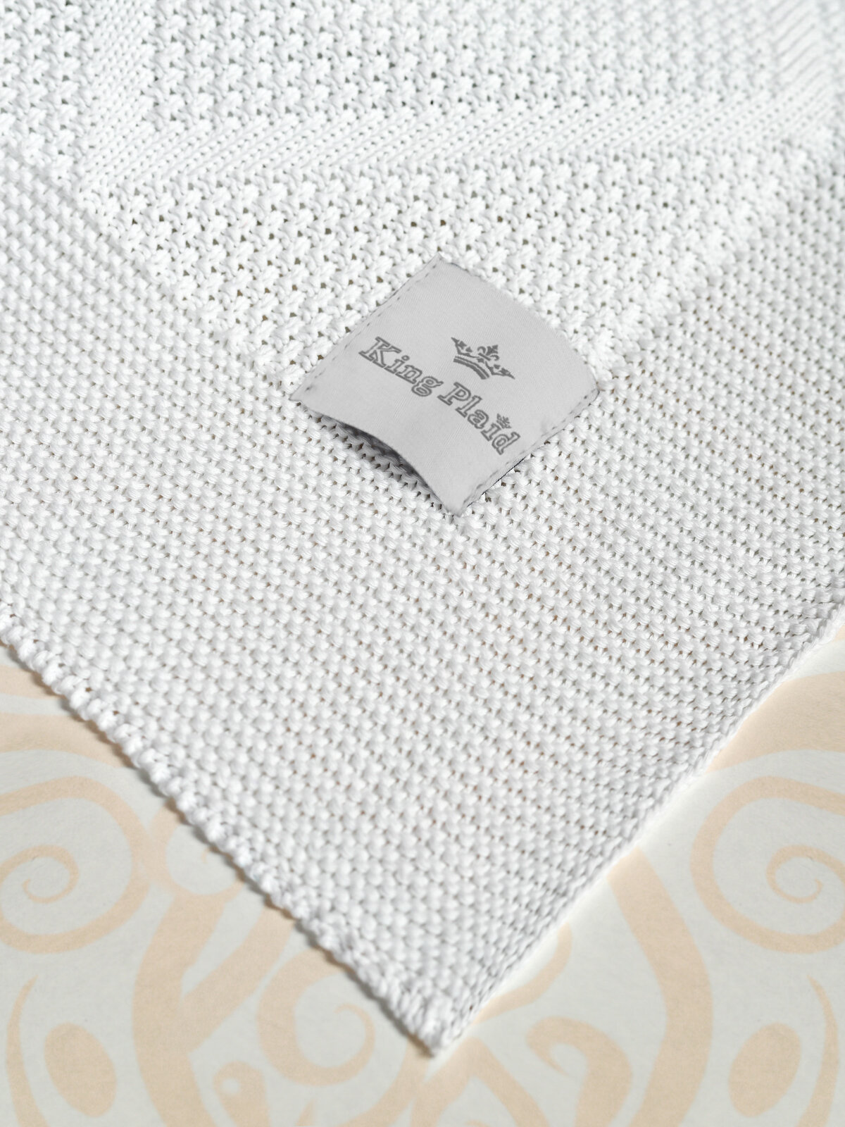Купить Плед 180х220, вязаный, KING PLAID, белый, хлопок, покрывало на кровать, на диван, на кресло, в подарочной сумке