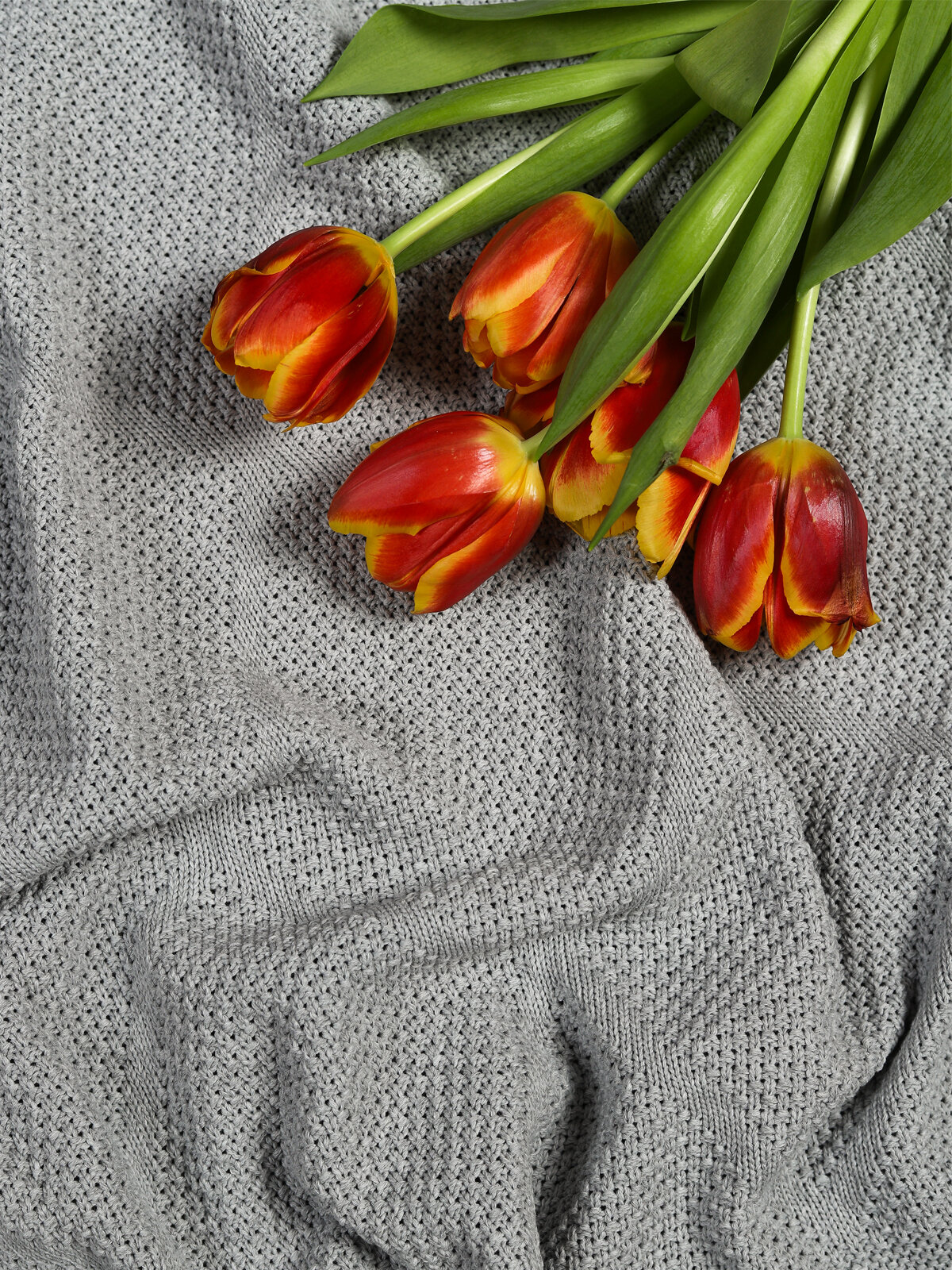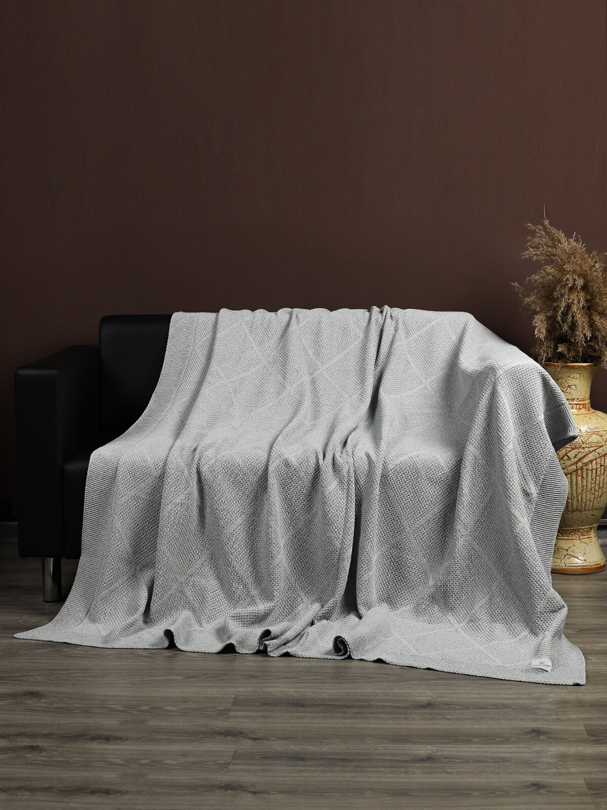 Плед 180х220, вязаный, KING PLAID, серый, хлопок, покрывало на кровать, на диван, на кресло, в подарочной сумке