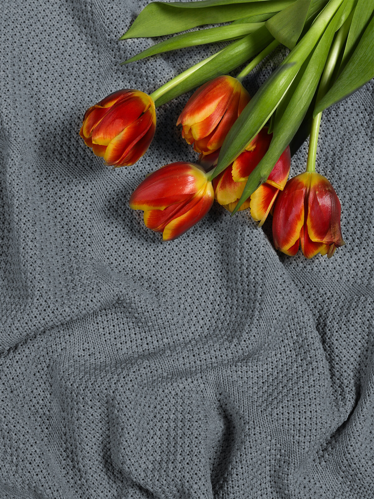 Плед 180х220, вязаный, KING PLAID, джинс, хлопок, покрывало на кровать, на диван, на кресло, в подарочной сумке