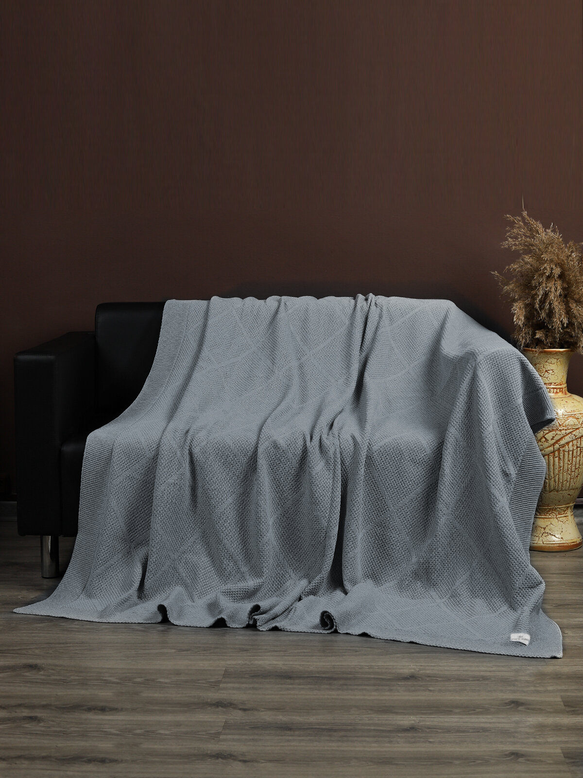 СохранитьПлед 180х220, вязаный, KING PLAID, серый, хлопок, покрывало на кровать, на диван, на кресло, в подарочной сумке интересное: