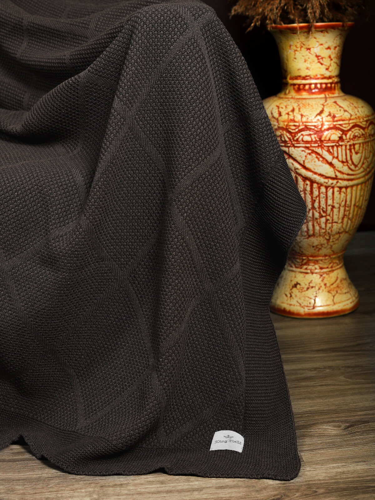СохранитьПлед 180х220, вязаный, KING PLAID, темно-бежевый, хлопок, покрывало на кровать, на диван, на кресло, в подарочной сумке интересное: