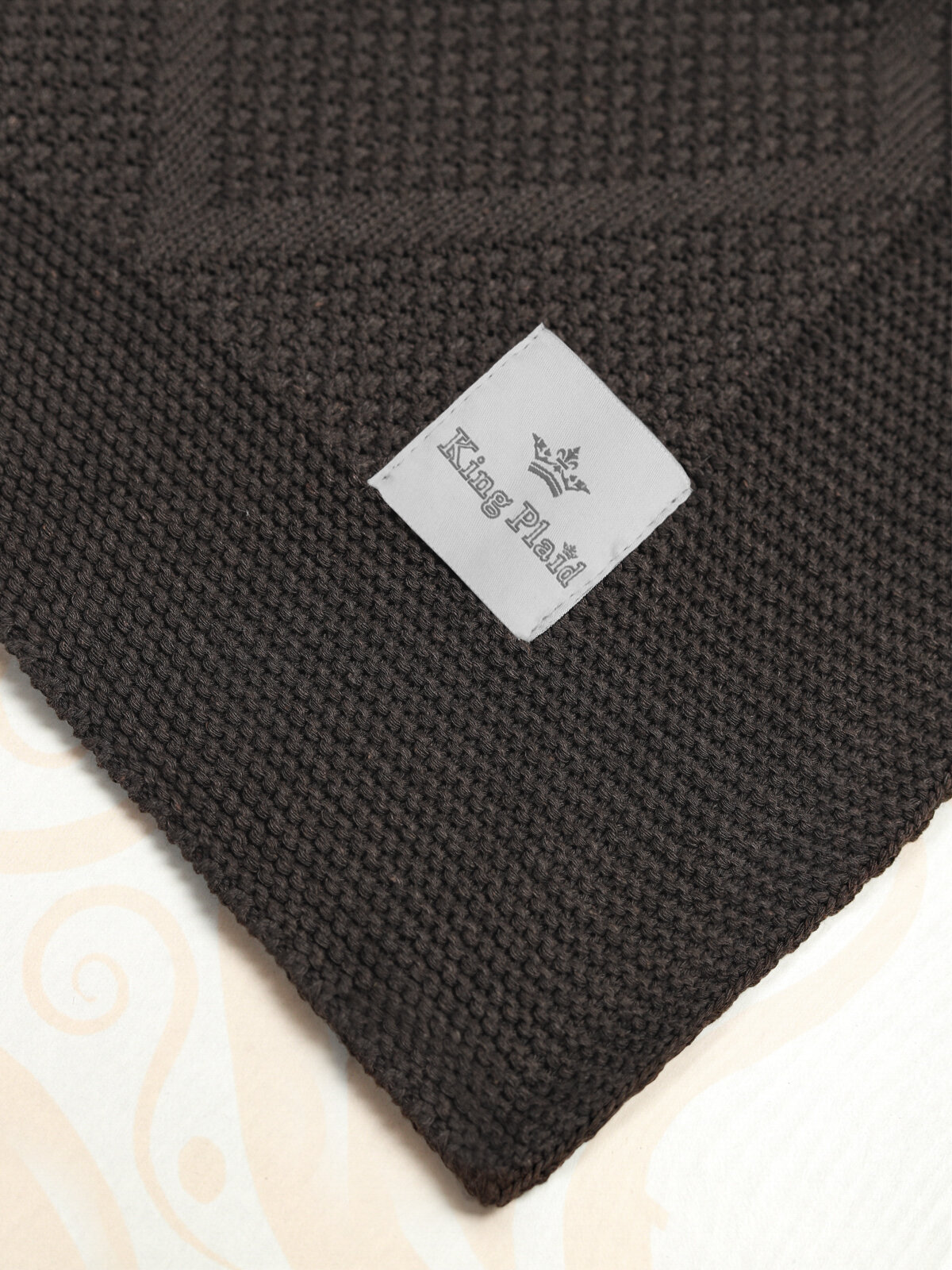 Купить Плед 180х220, вязаный, KING PLAID, темно-бежевый, хлопок, покрывало на кровать, на диван, на кресло, в подарочной сумке
