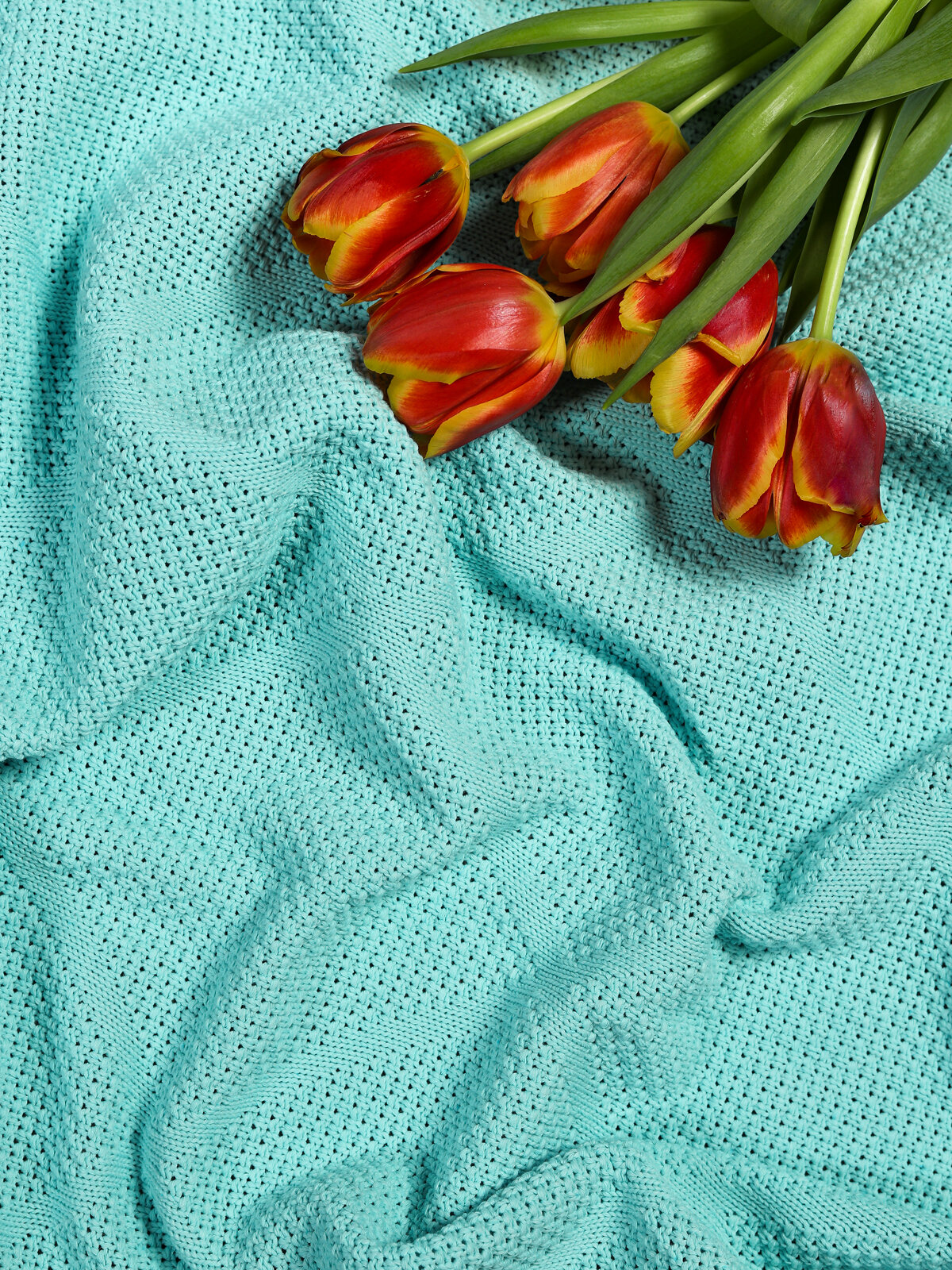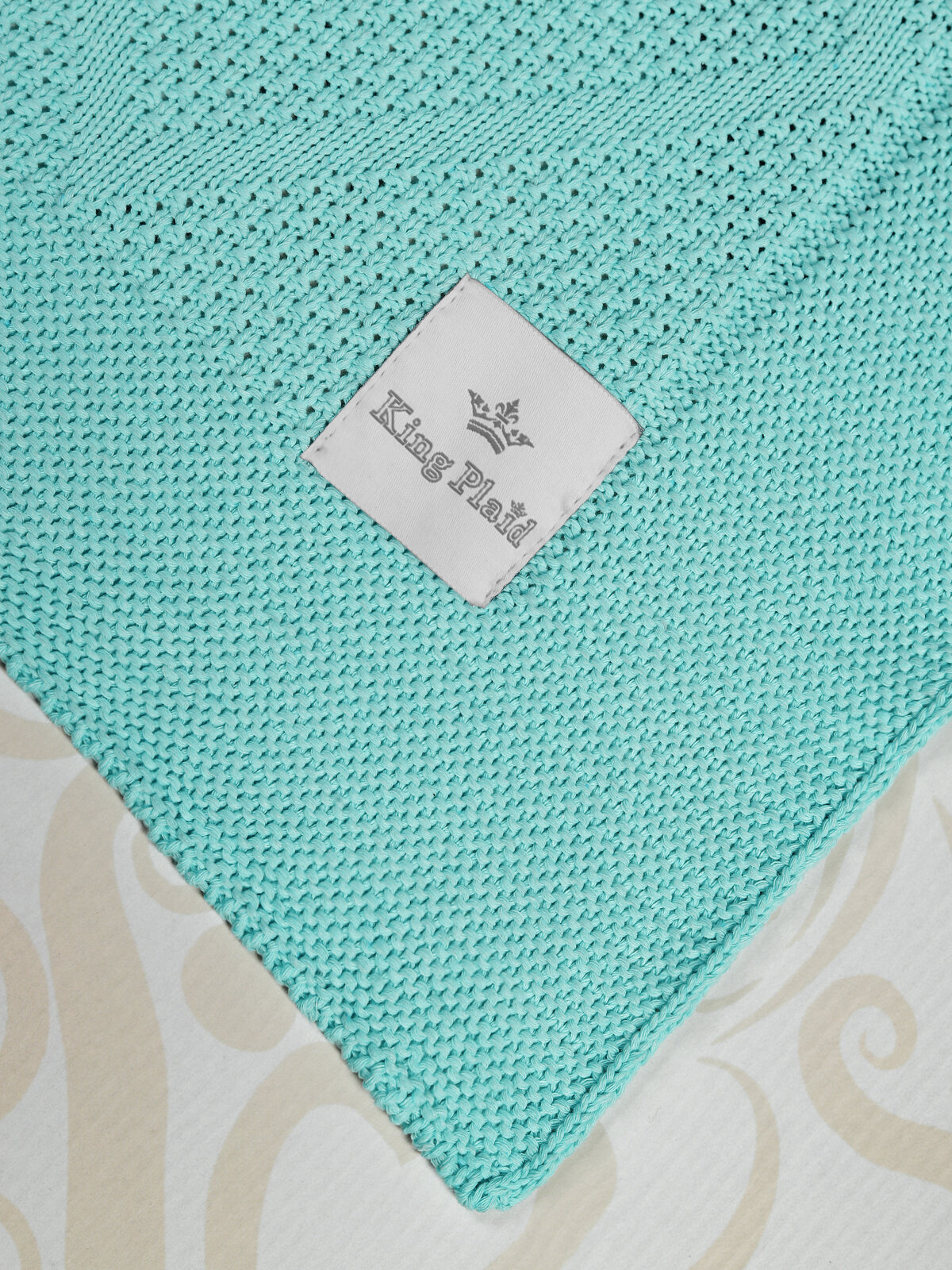 Купить Плед 180х220, вязаный, KING PLAID, бирюзовый, хлопок, покрывало на кровать, на диван, на кресло, в подарочной сумке