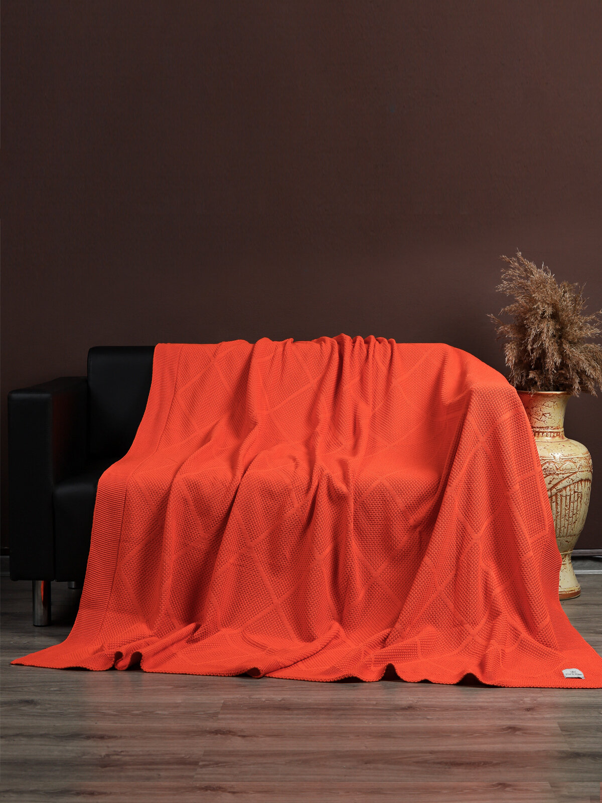 СохранитьПлед 180х220, вязаный, KING PLAID, коралловый, хлопок, покрывало на кровать, на диван, на кресло, в подарочной сумке интересное: