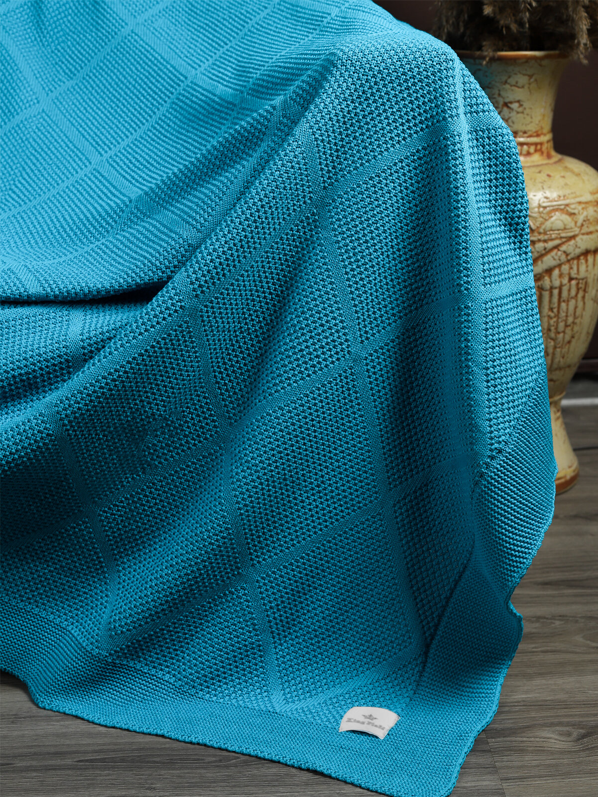 СохранитьПлед 180х220, вязаный, KING PLAID, голубой, хлопок, покрывало на кровать, на диван, на кресло, в подарочной сумке интересное: