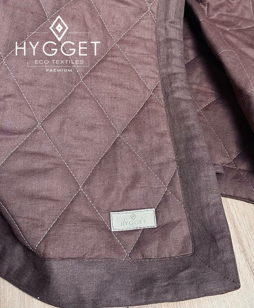 Дизайнерское льняное стеганое покрывало на кровать или диван Natural шоколад, 230х215 см., Лен, плед