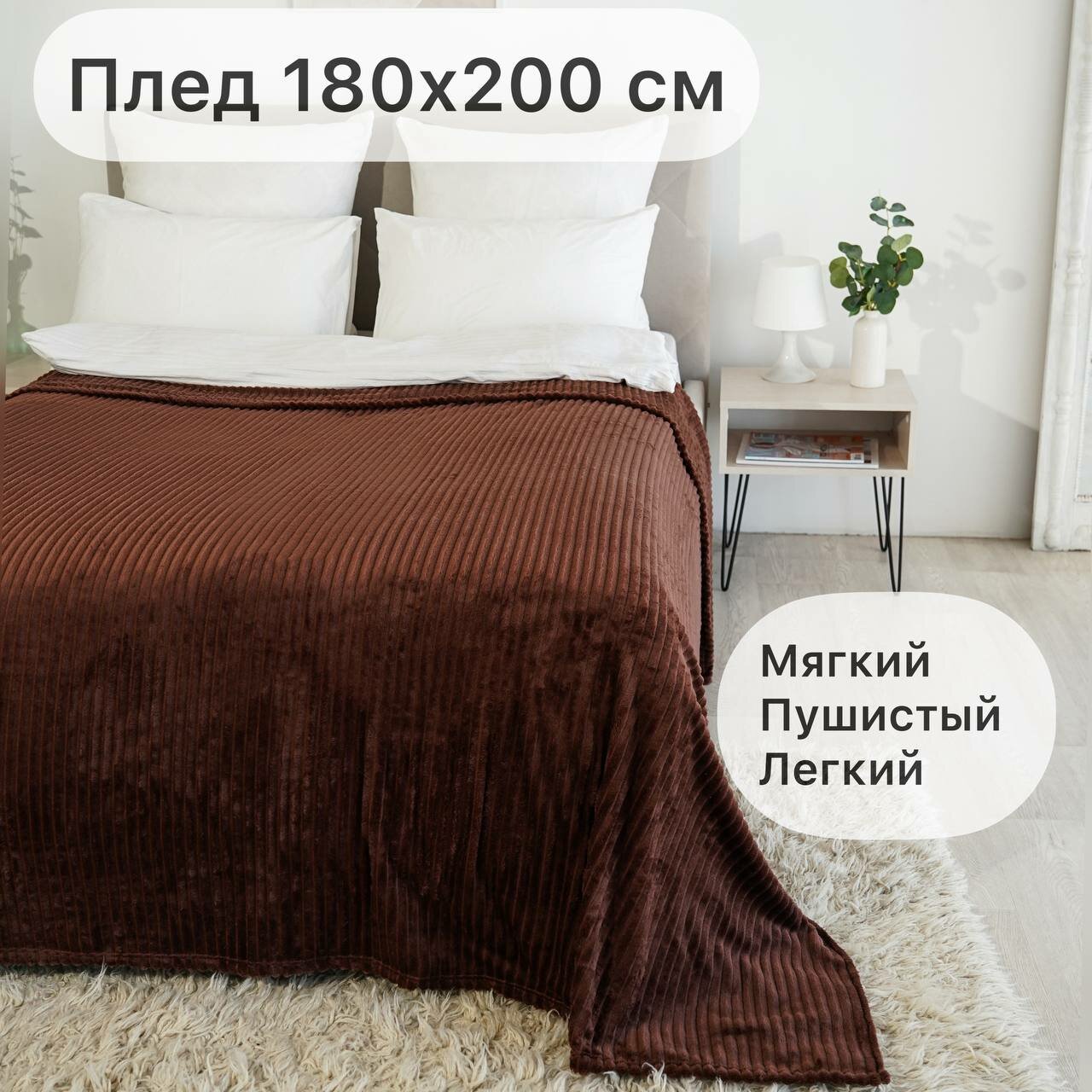 Плед Texrus, Велсофт 200х150 коричневый/мягкий