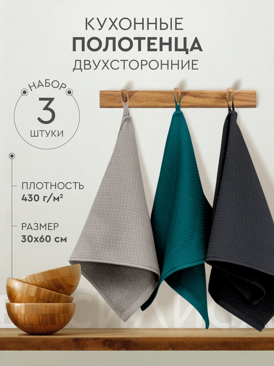 СохранитьНабор кухонных полотенец Лофт 30х60, 3шт, Серый-изумрудчерный интересное: