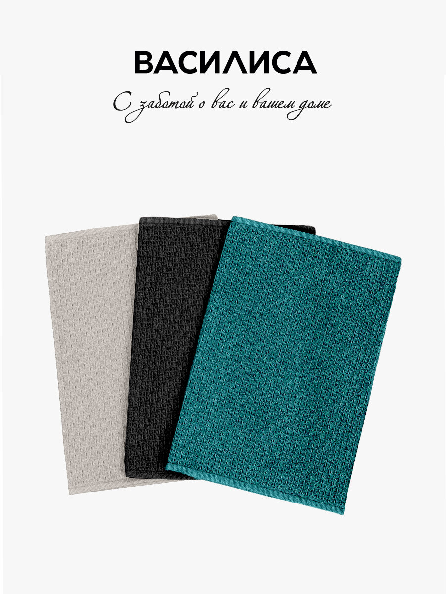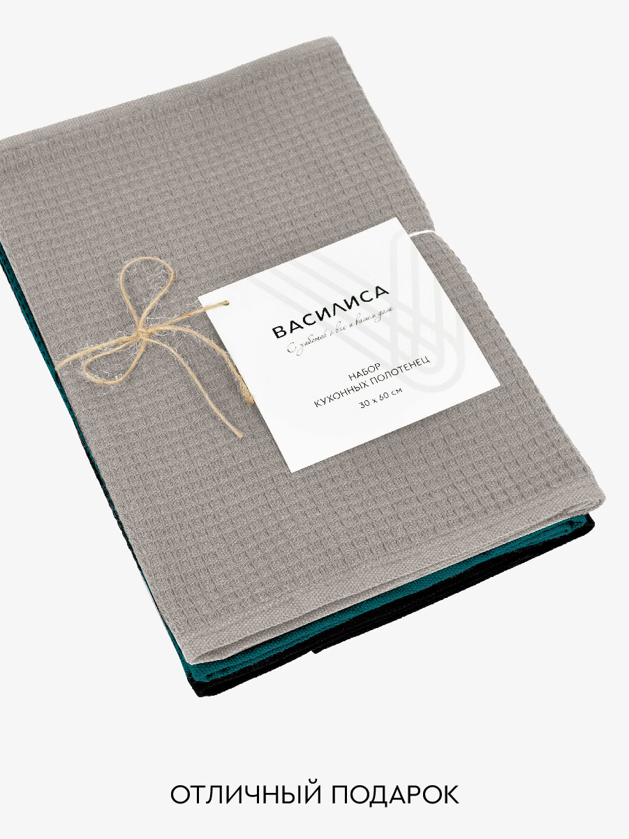 Набор кухонных полотенец Василиса Лофт 30х60 см, 3шт, Серый, Изумруд, Черный
