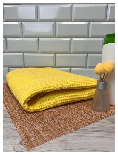Полотенце Вафельное Банное / Пляжное / Лимонное 100х150 пл. 260 г/м2 / для ванной / для пляжа / для моря / 100% Хлопок