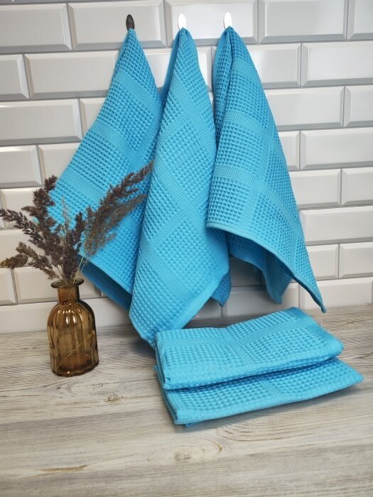 СохранитьПолотенце кухонное вафельное набор 5 шт. 35x75 Ярко-голубой однотонное интересное: