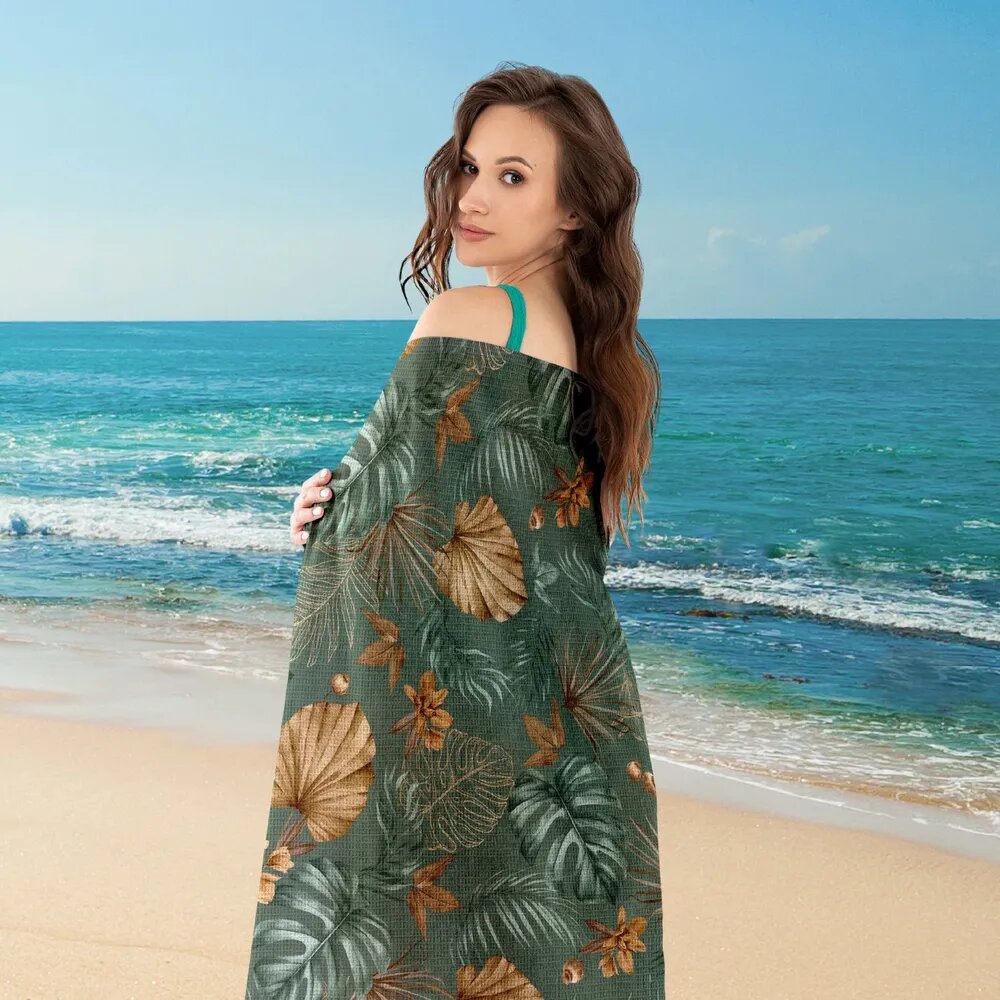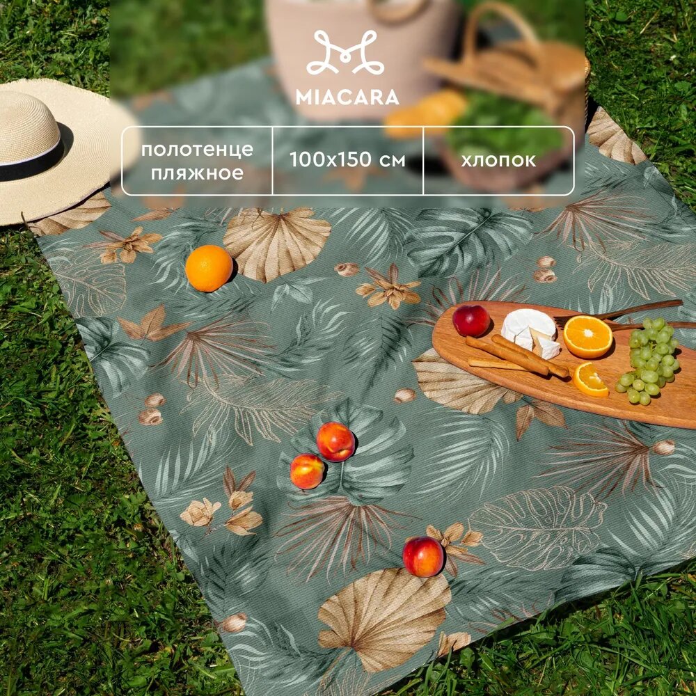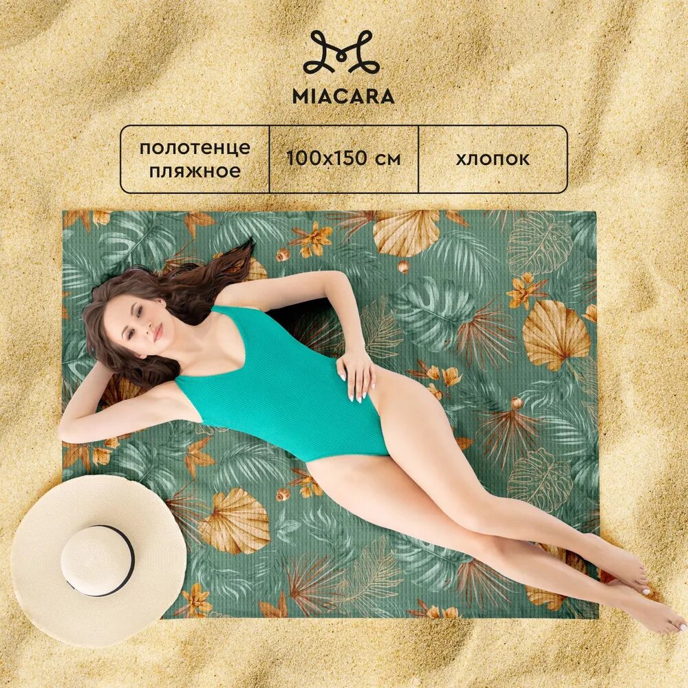 Купить Полотенце вафельное пляжное 100х150 "Mia Cara" рис 30662-1 Tropical palm / банное
