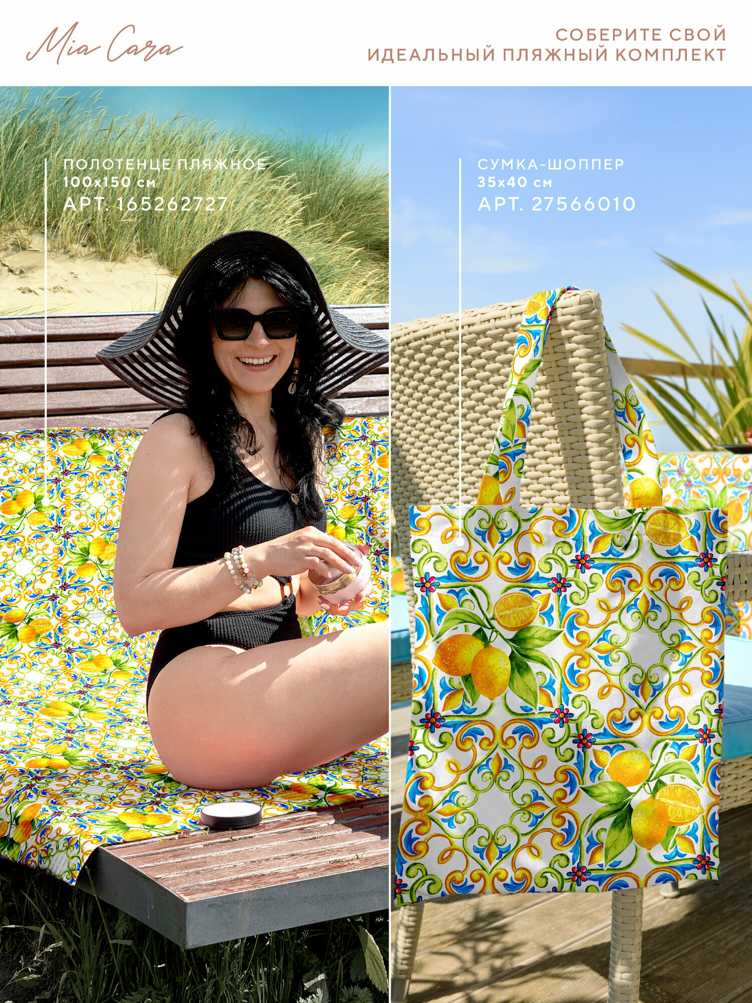 СохранитьПолотенце вафельное пляжное 100х150 "Mia Cara" рис 30272-1 Lemonade / банное интересное: