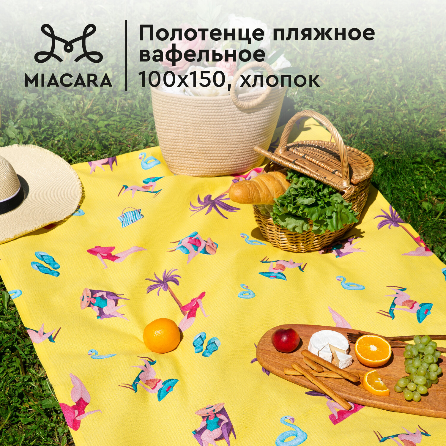 Полотенце вафельное пляжное 100х150 "Mia Cara" рис 30272-1 Lemonade / банное