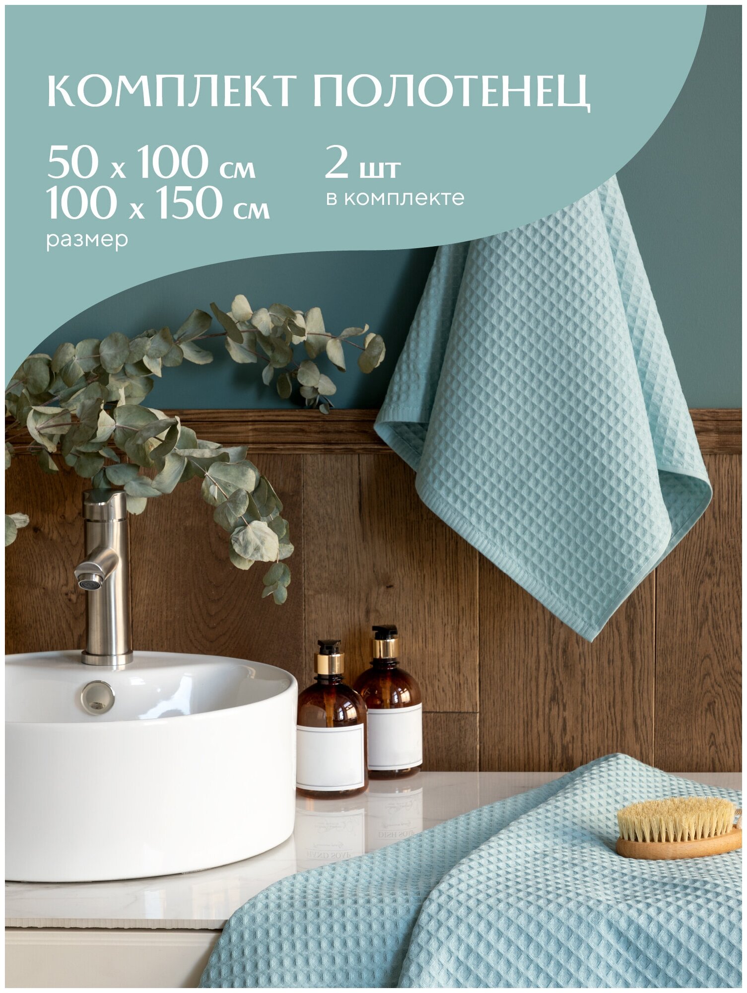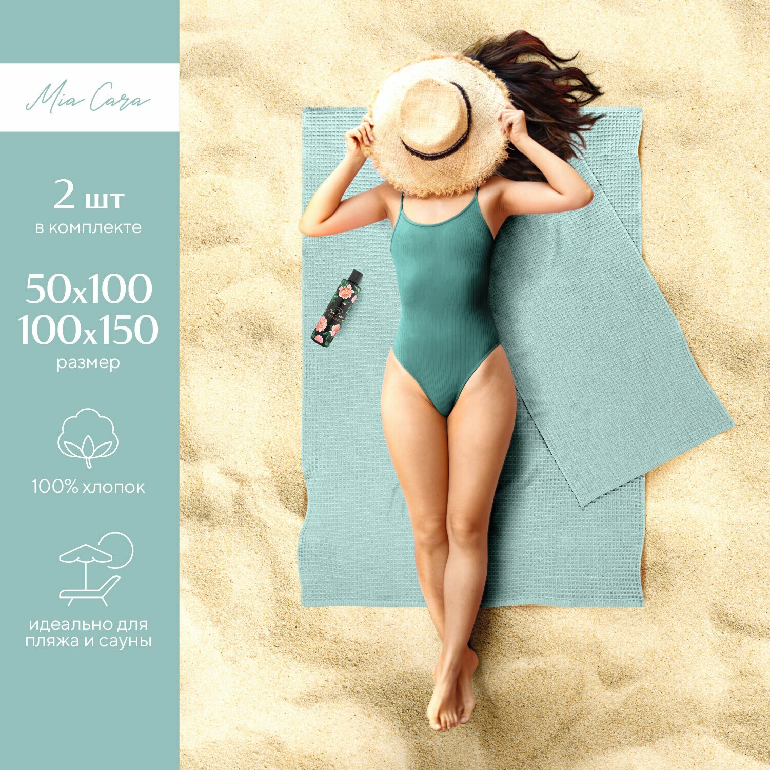 Купить Пляжное вафельное полотенце (2 шт) "Mia Cara" (50х100+100х150) мятный