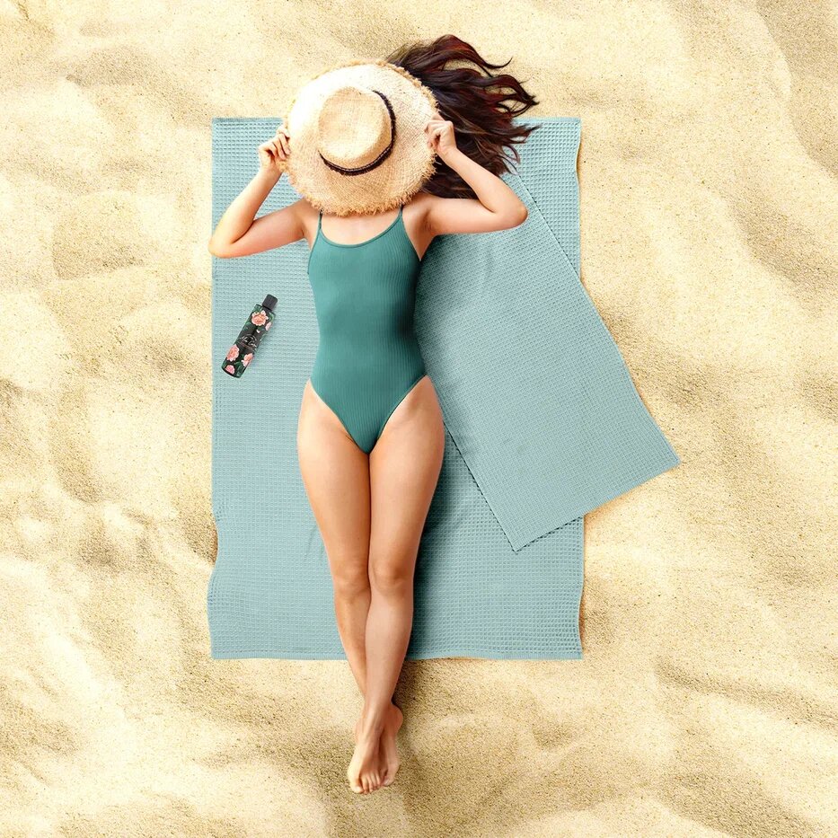 Пляжное вафельное полотенце (2 шт) "Mia Cara" (50х100+100х150) серо-голубой / пляжное полотенце вафельное