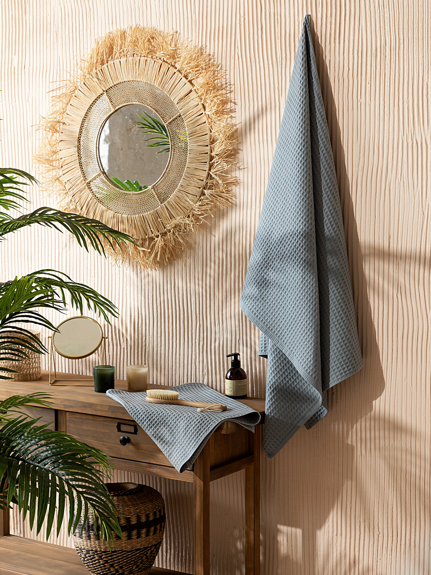 СохранитьПляжное вафельное полотенце (2 шт) "Mia Cara" (50х100+100х150) серо-голубой / пляжное полотенце вафельное интересное: