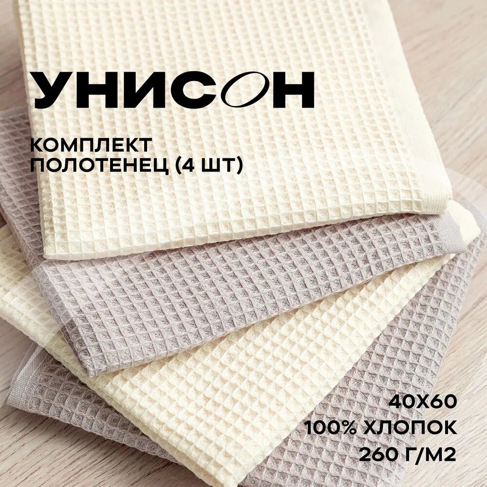 Купить Комплект вафельных полотенец 40х60 (4 шт.) "Унисон" ecru/beige