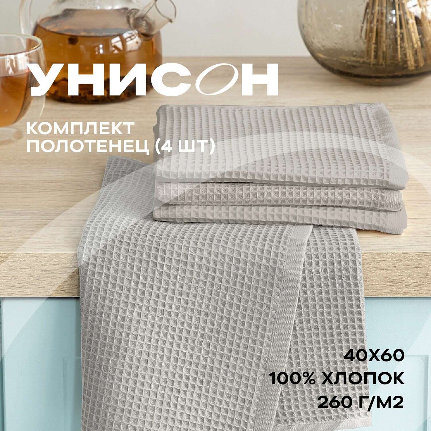 Купить Комплект вафельных полотенец 40х60 (4 шт.) "Унисон" beige