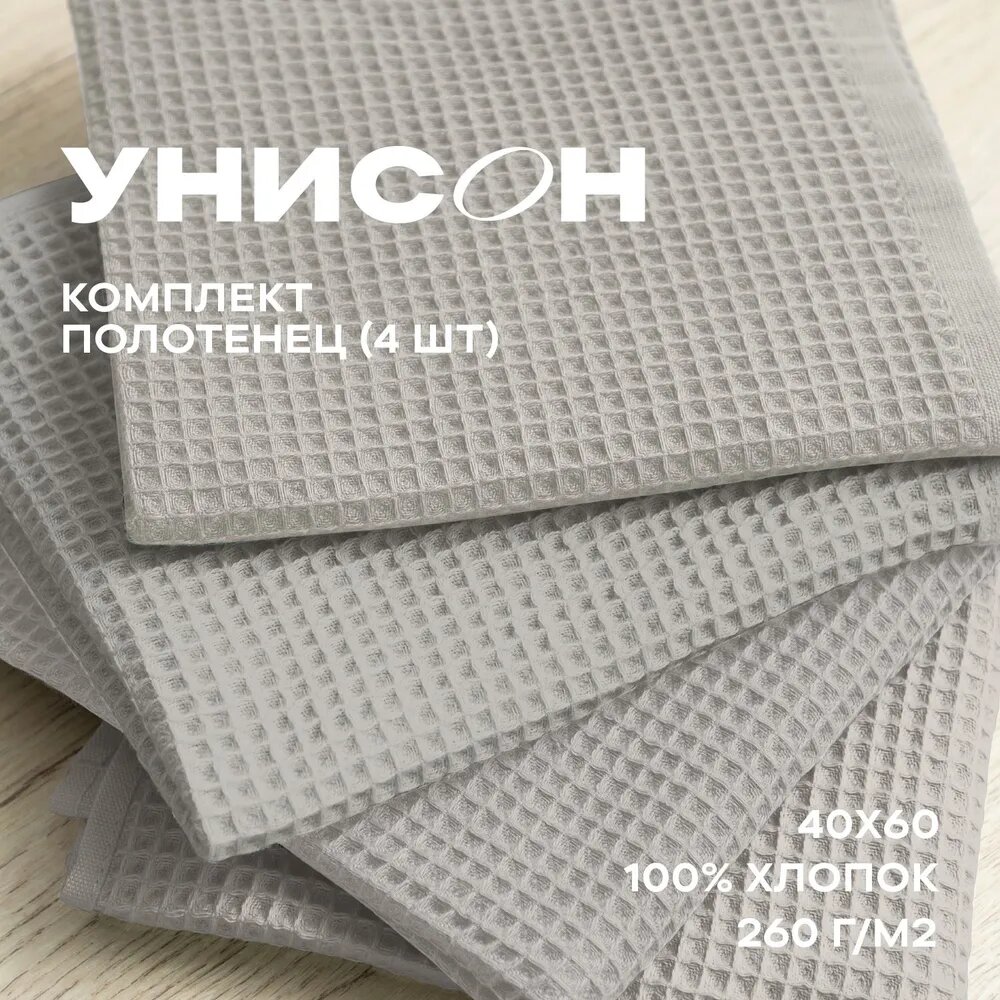 Комплект вафельных полотенец 40х60 (4 шт.) "Унисон" ecru/graphite