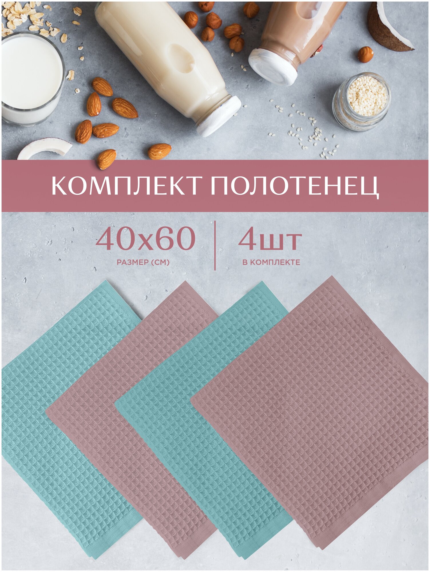 Купить Комплект вафельных полотенец 40х60 (4 шт.) "Унисон" mint/lilac