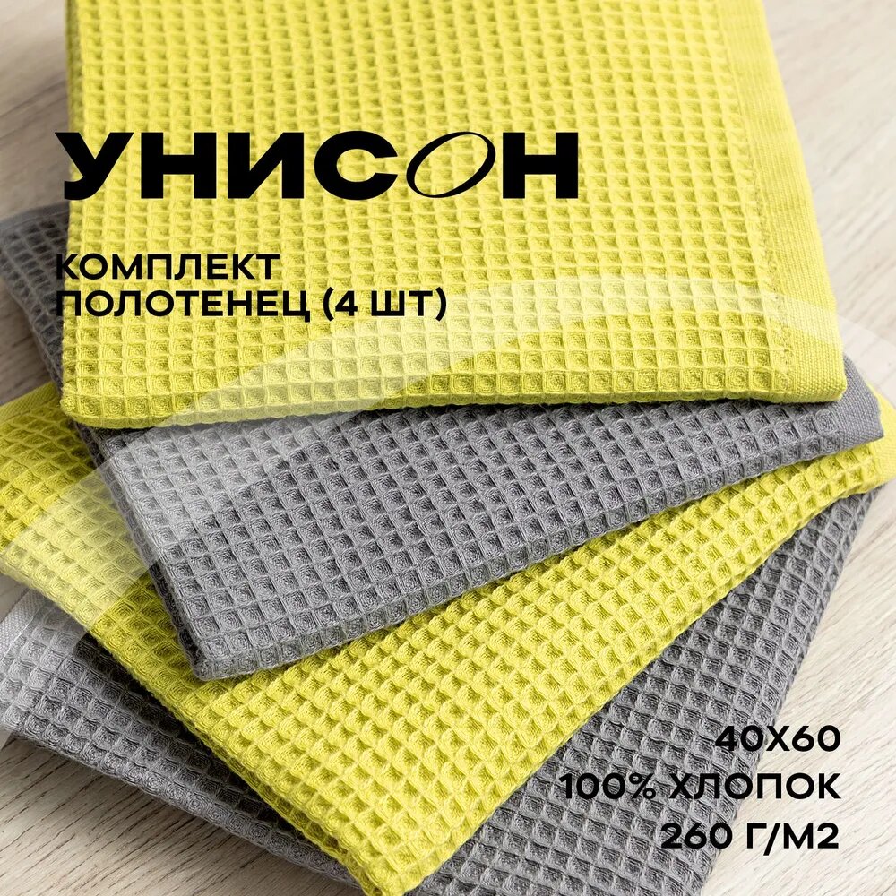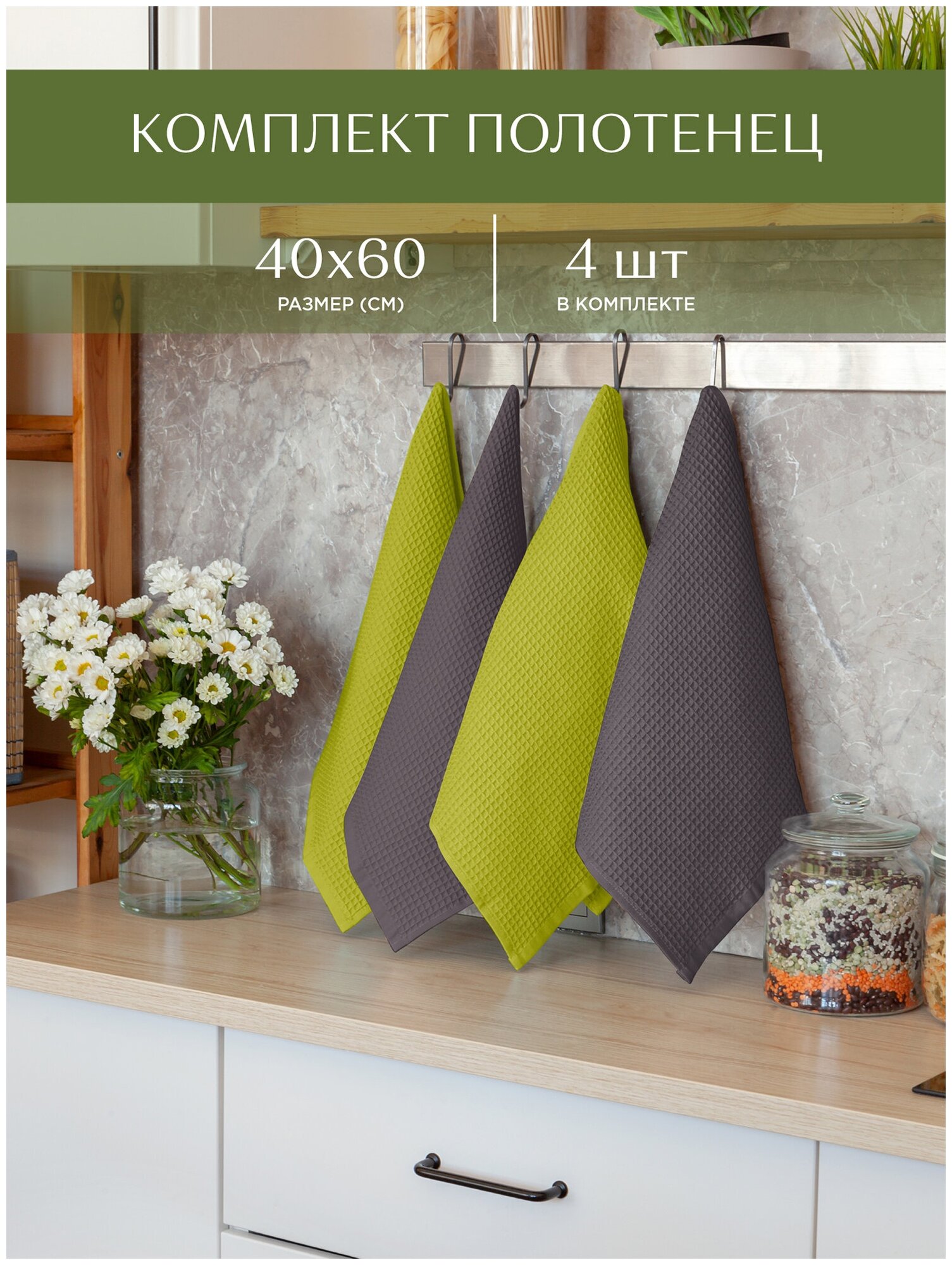Купить Комплект вафельных полотенец 40х60 (4 шт.) "Унисон" graphite/lime