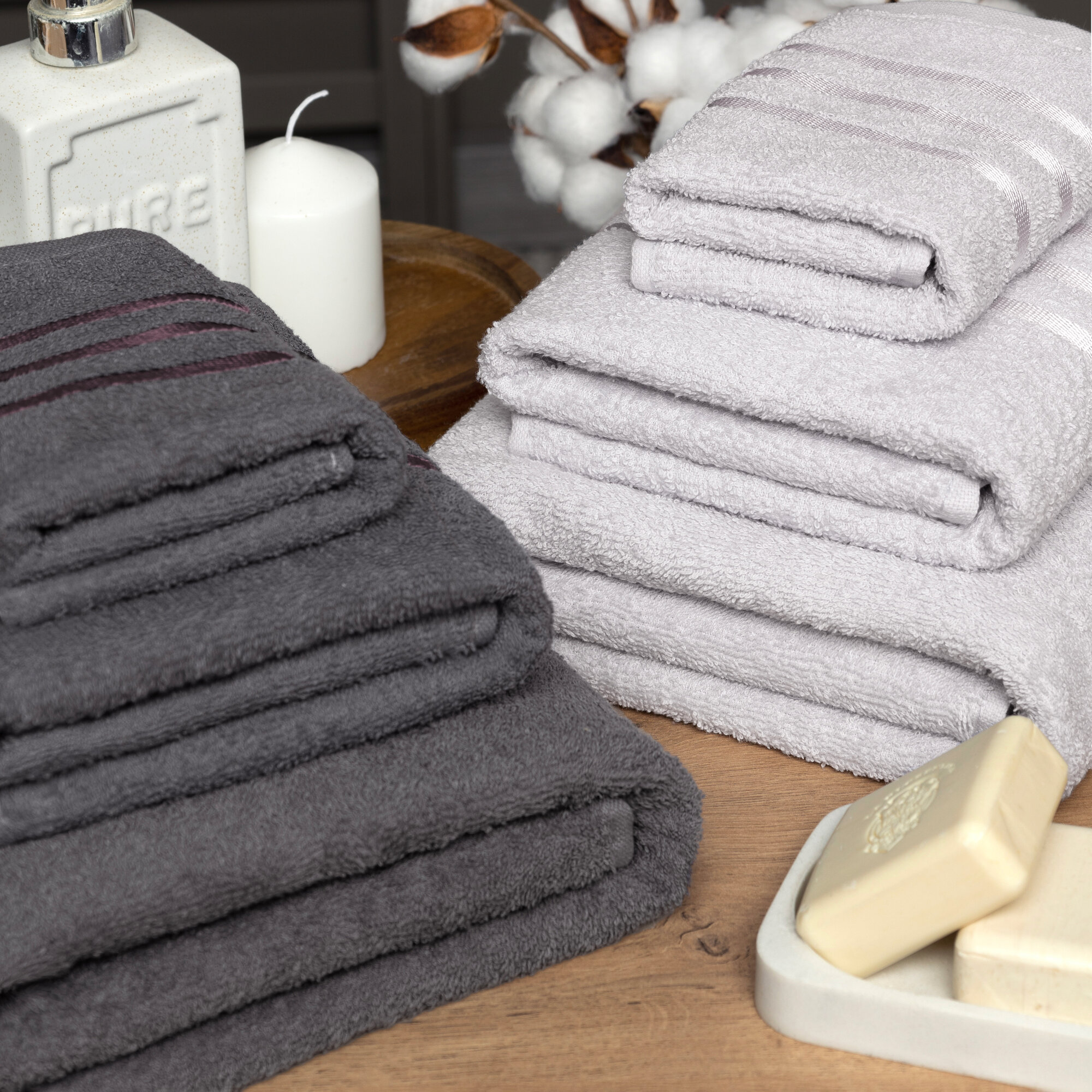 Набор полотенец махровых / Комплект махровых полотенец 6 шт 30х60 - 2шт; 50х80 — 2 шт; 70х130 — 2 шт Galtex Классико Темно серый/Светло серый интересное: