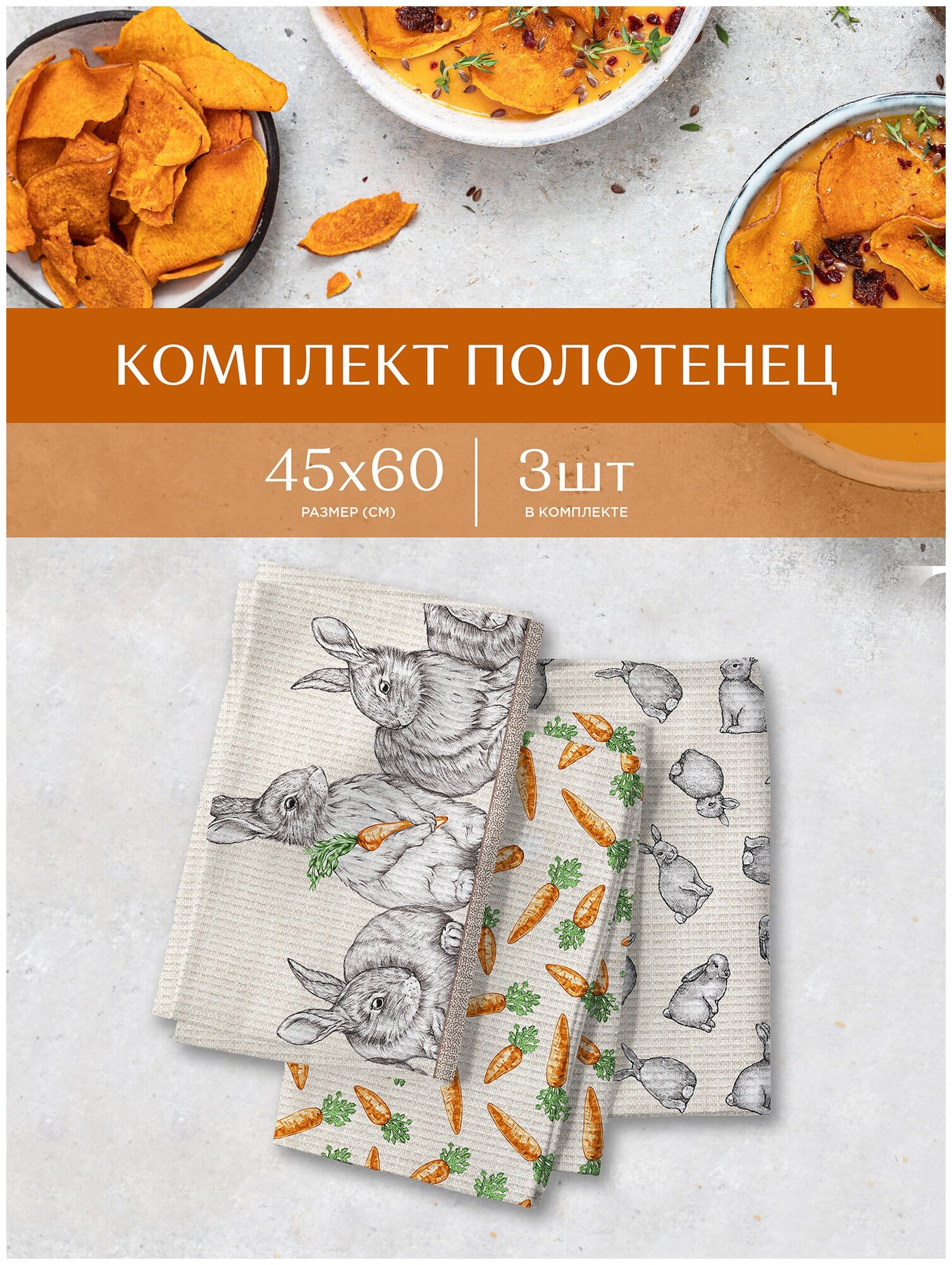 Купить Комплект вафельных полотенец 45х60 (3 шт.) "Унисон" рис 33140-1 Rabbit valley