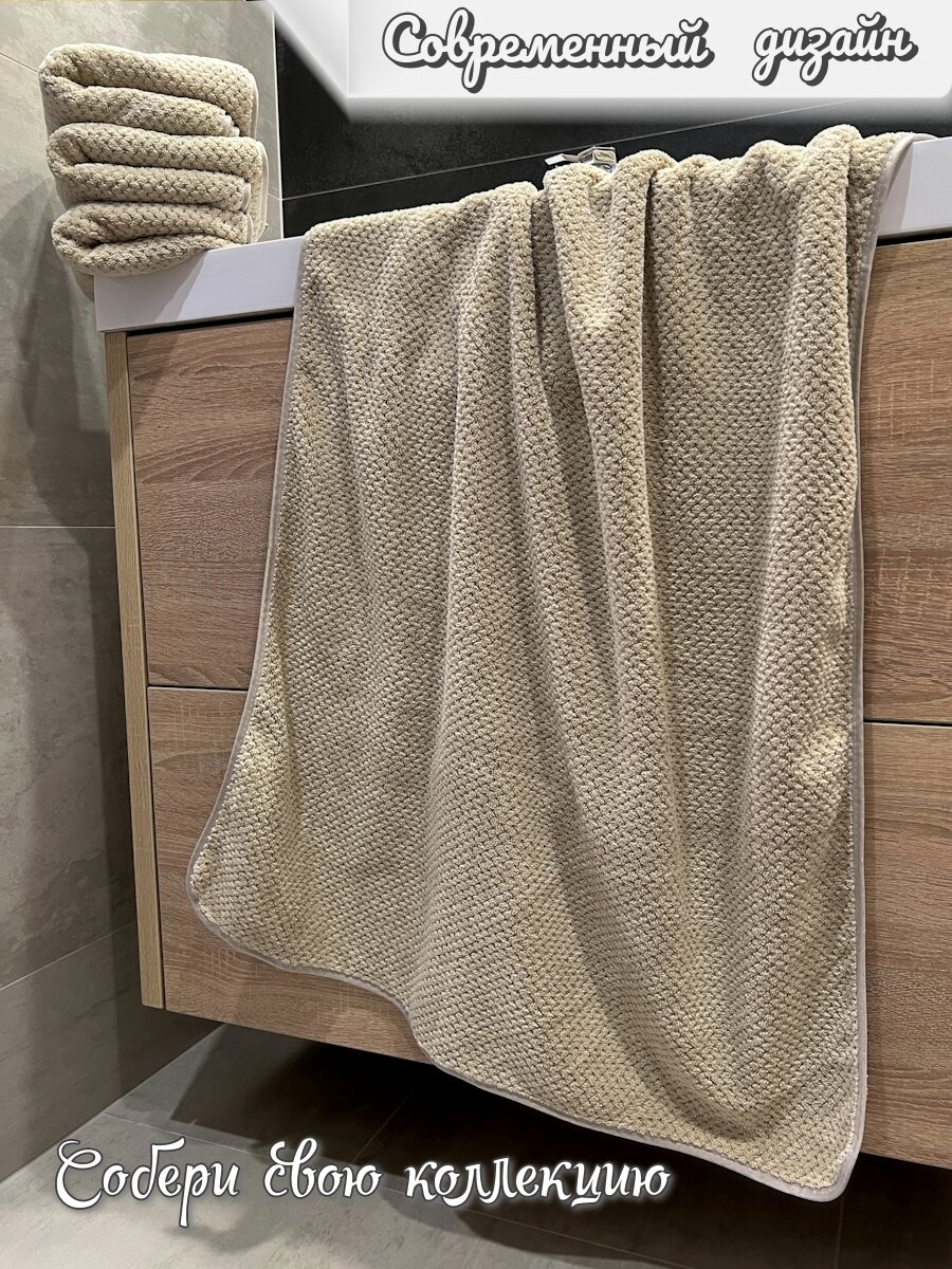 СохранитьПолотенце банное из микрофибры размер 70 х 140, полотенце для бани спортзала пляжное, бежевое интересное: