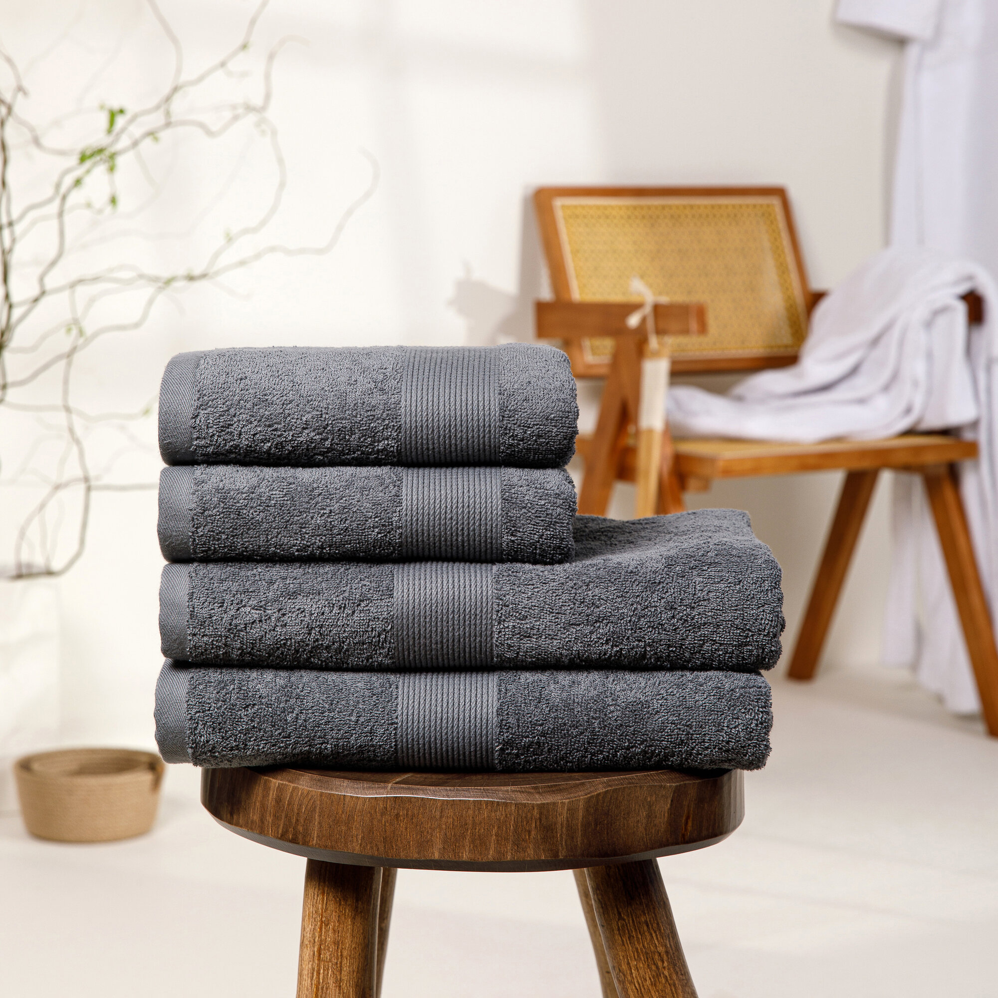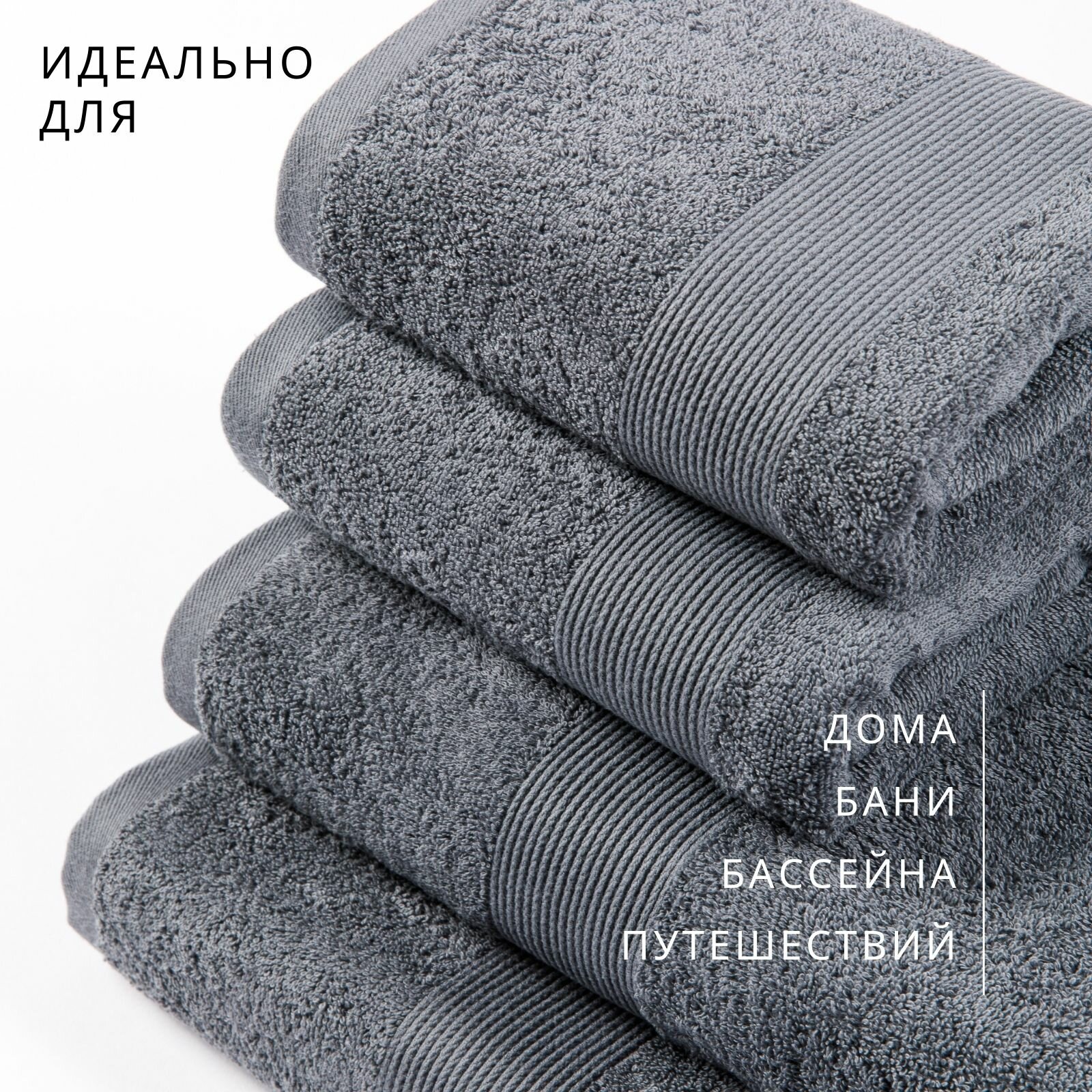 Полотенце банное махровое набор 4 шт графит, серый