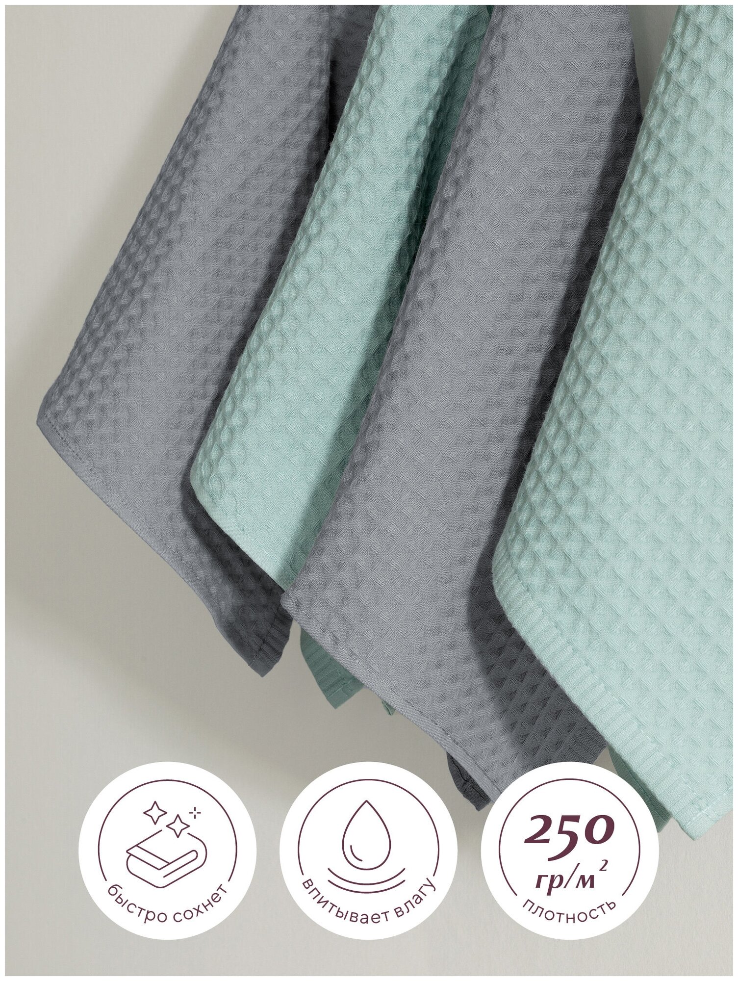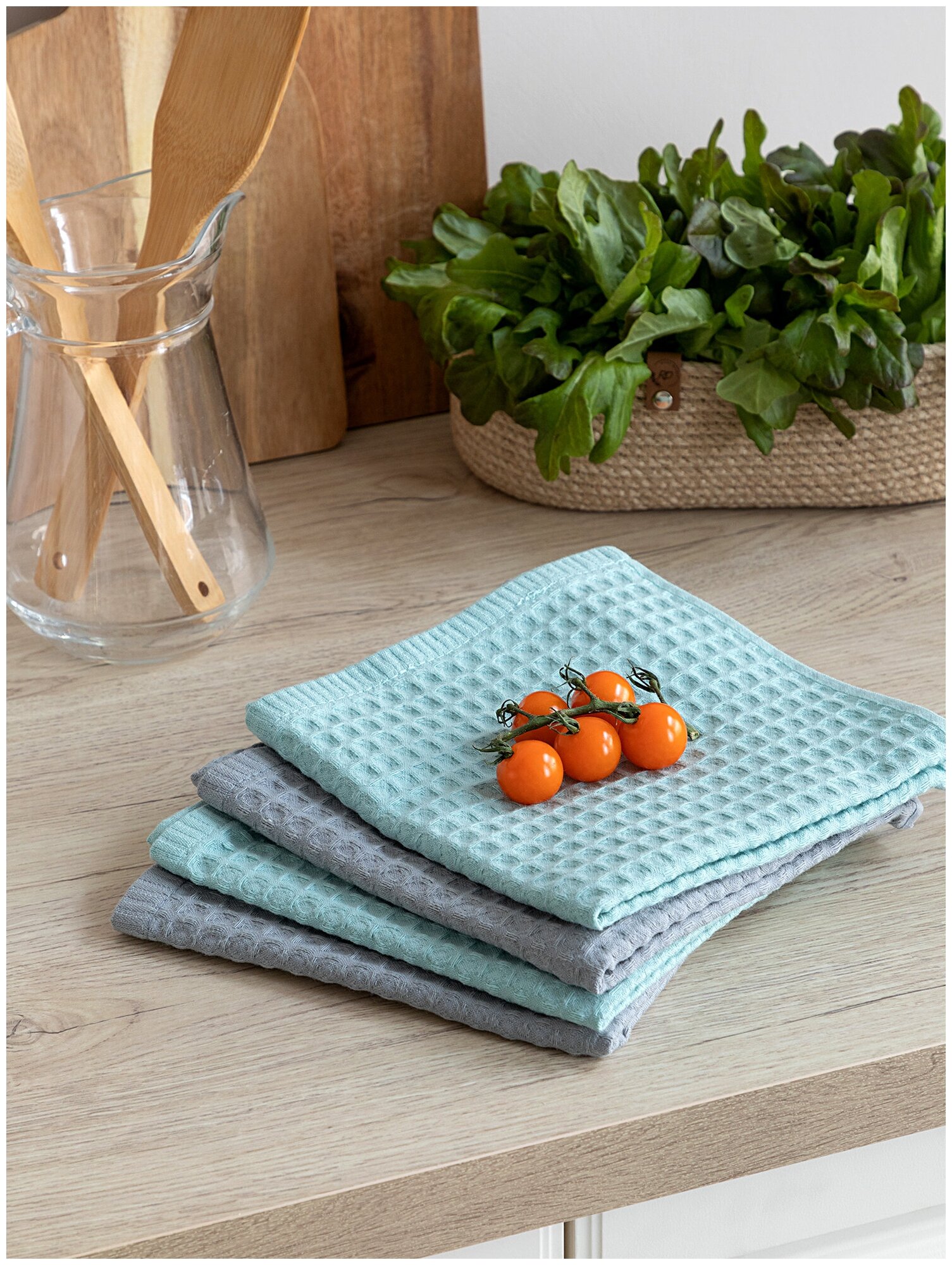 Купить Комплект вафельных полотенец 40х60 (4 шт.) "Mia Cara" серо-голубой/мятный