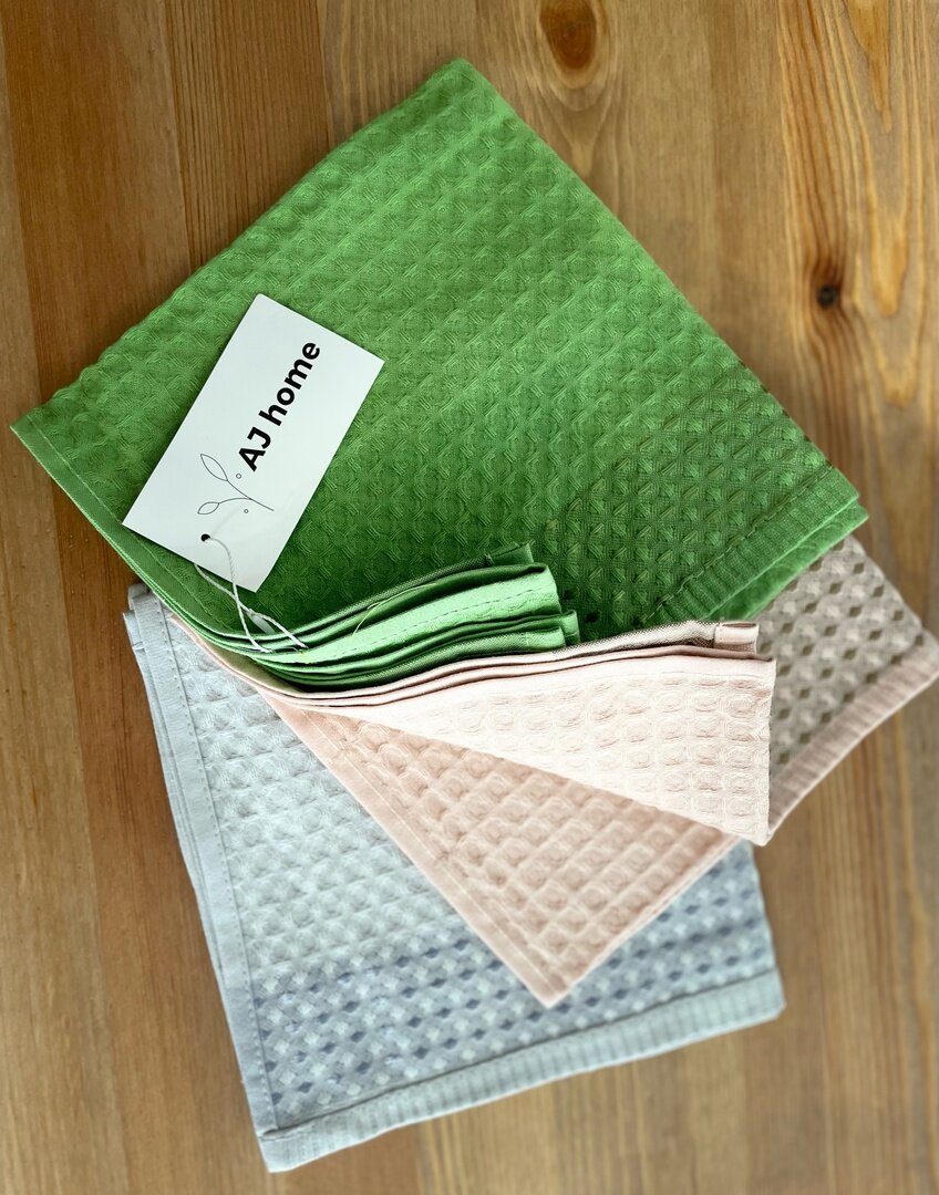Комплект вафельных полотенец 40х60 (4 шт.) "MiaCara" серо-голубой/мятный/молочный/кремовый