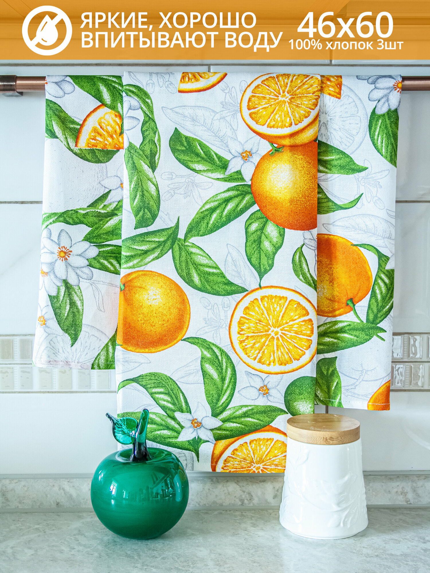 Купить Полотенце кухонные 3 шт Апельсины