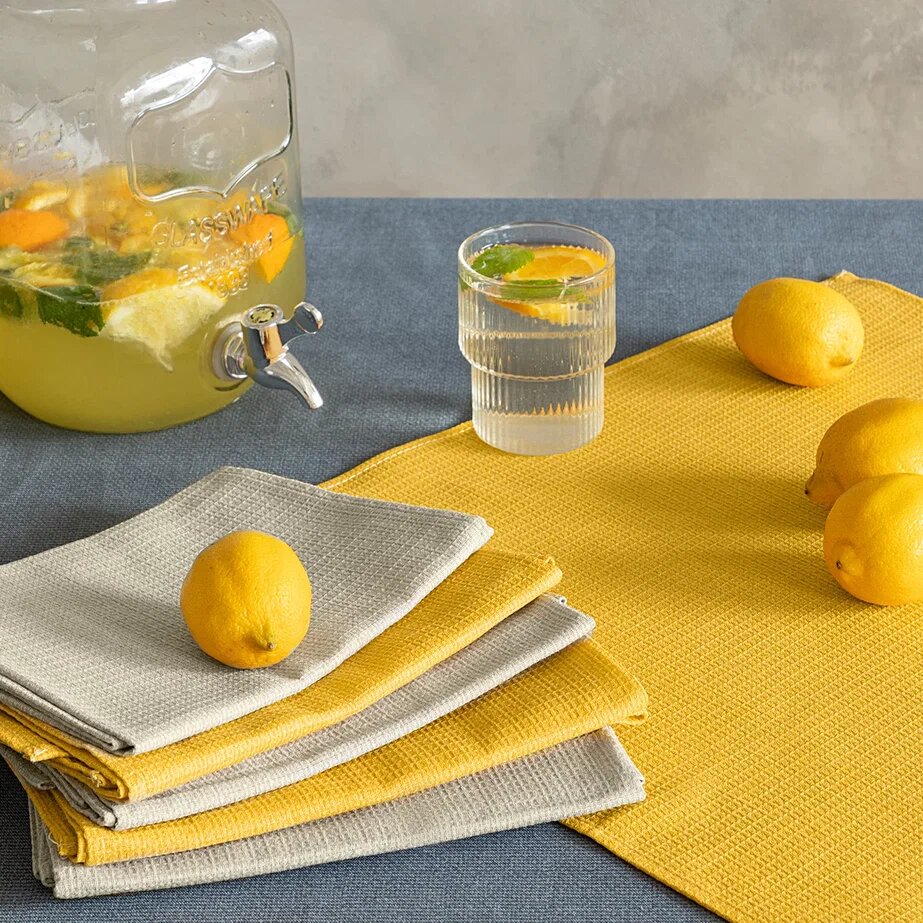 Купить Комплект вафельных полотенец 45х60 (6 шт.) "Унисон" рис 30004-15/30004-16 Basic бежевый/желтый