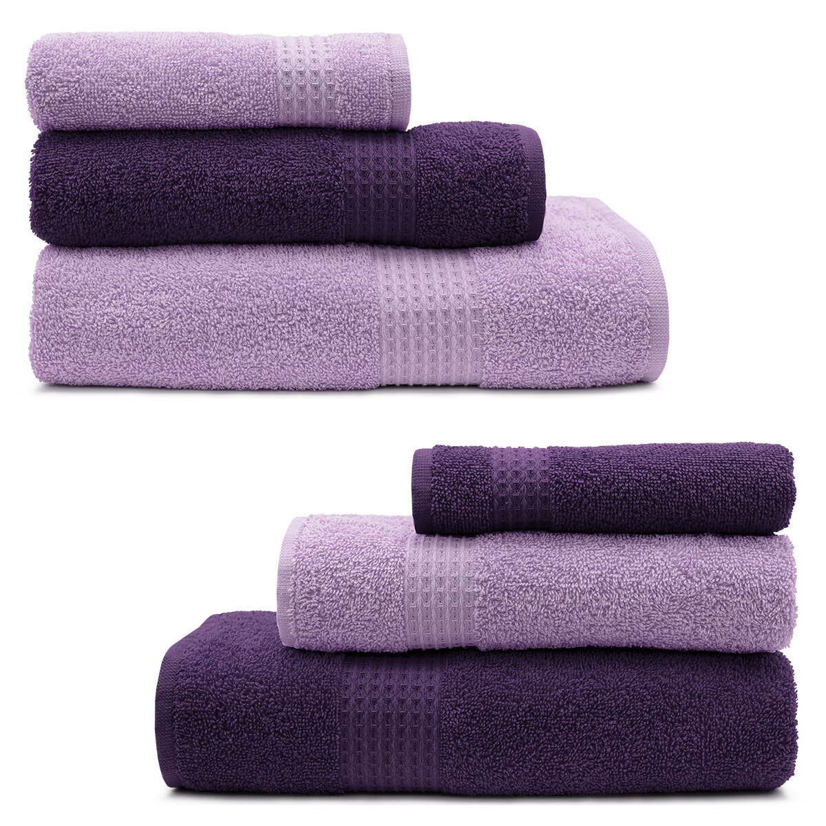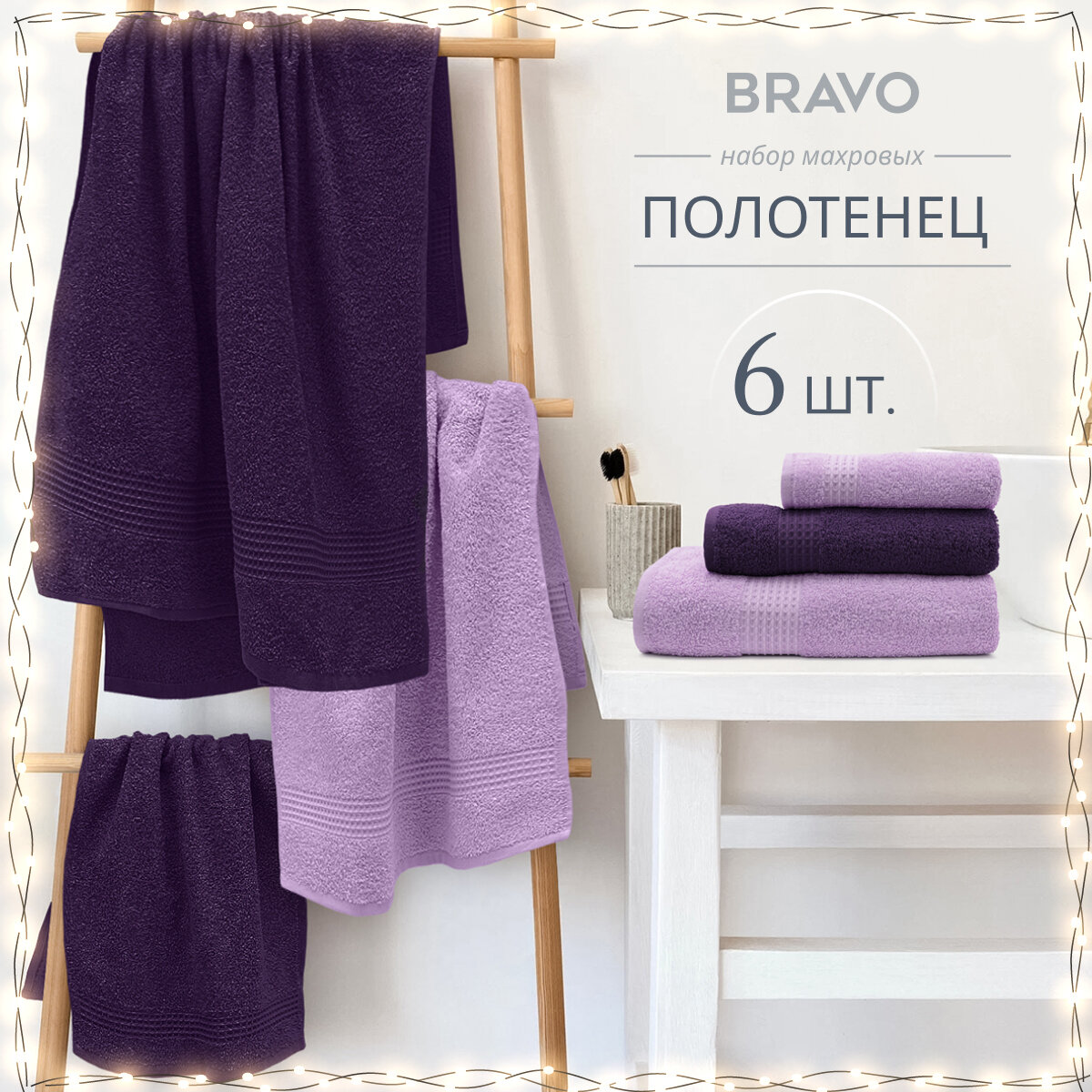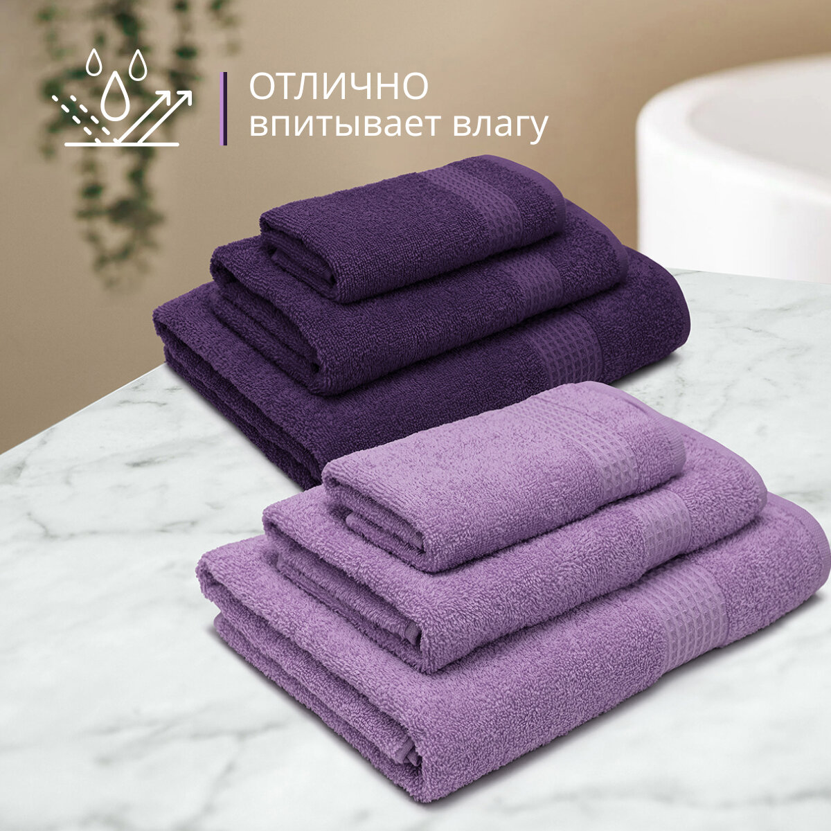 Купить Большой набор махровых полотенец для всей семьи Самур - 6 штук (2 больших, 2 средних, 2 маленьких) Фиолетовый/ хлопок / подарок