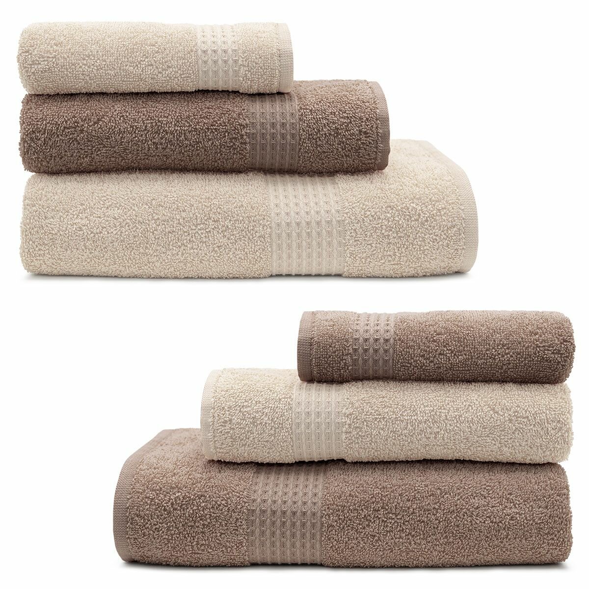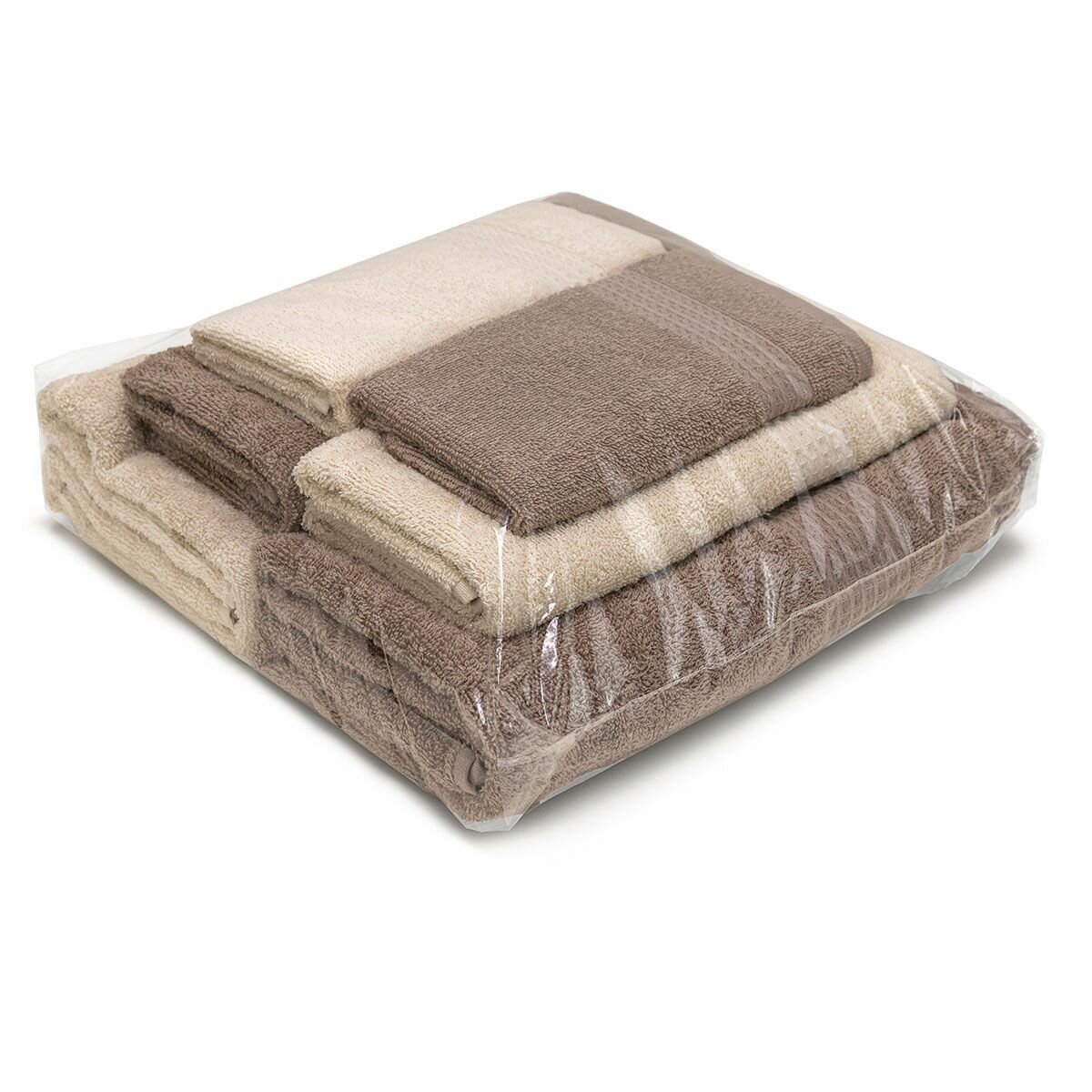 Купить Большой набор махровых полотенец для всей семьи Самур - 6 штук (2 больших, 2 средних, 2 маленьких) бежевый / хлопок / подарок