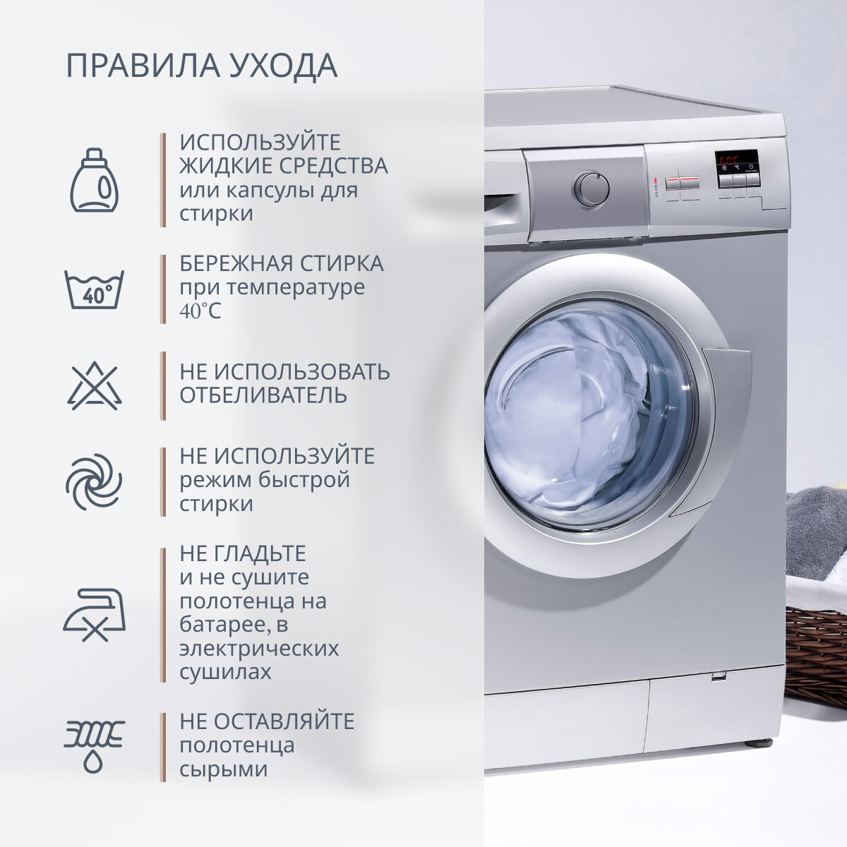 | Размеры полотенца для рук | 30х60 cм |