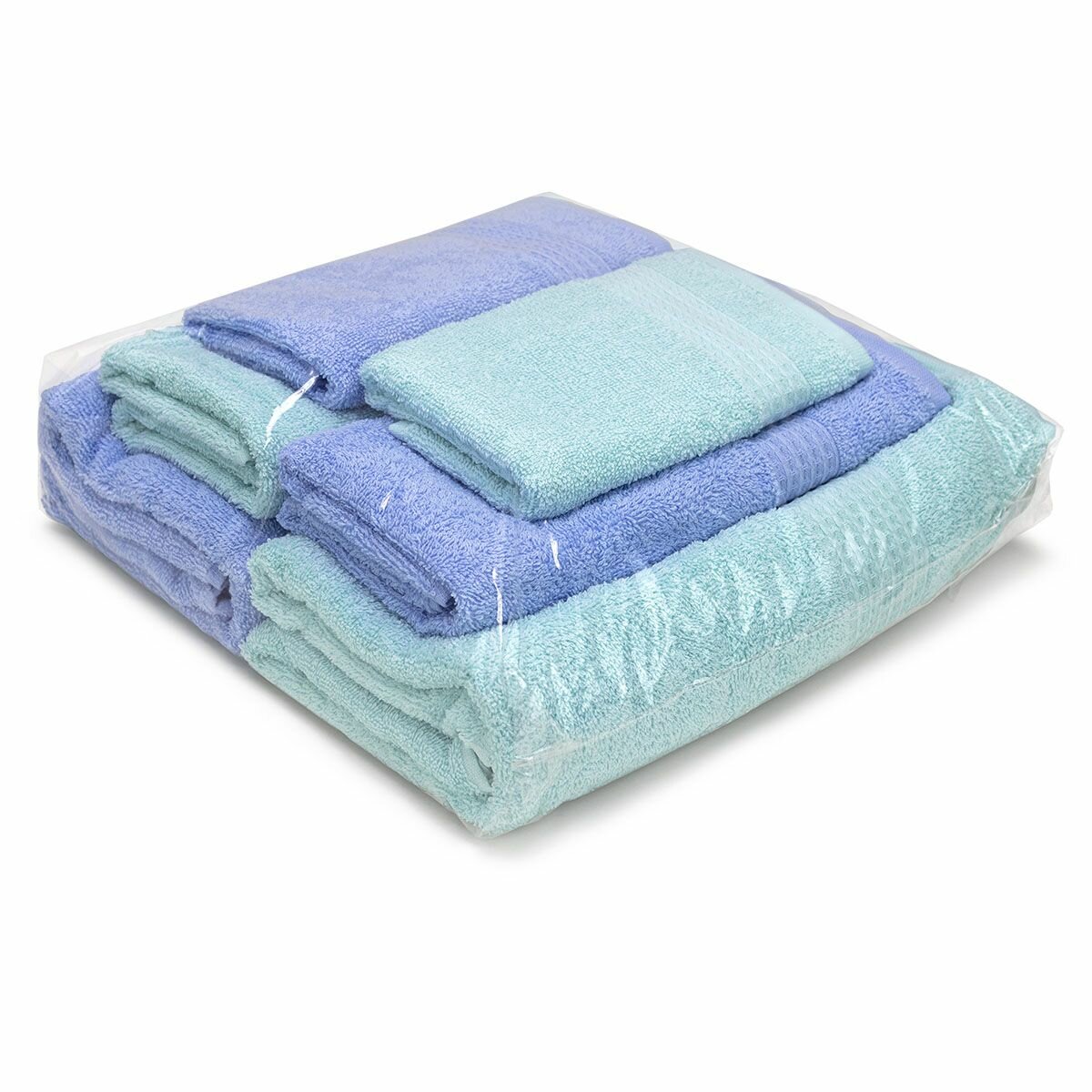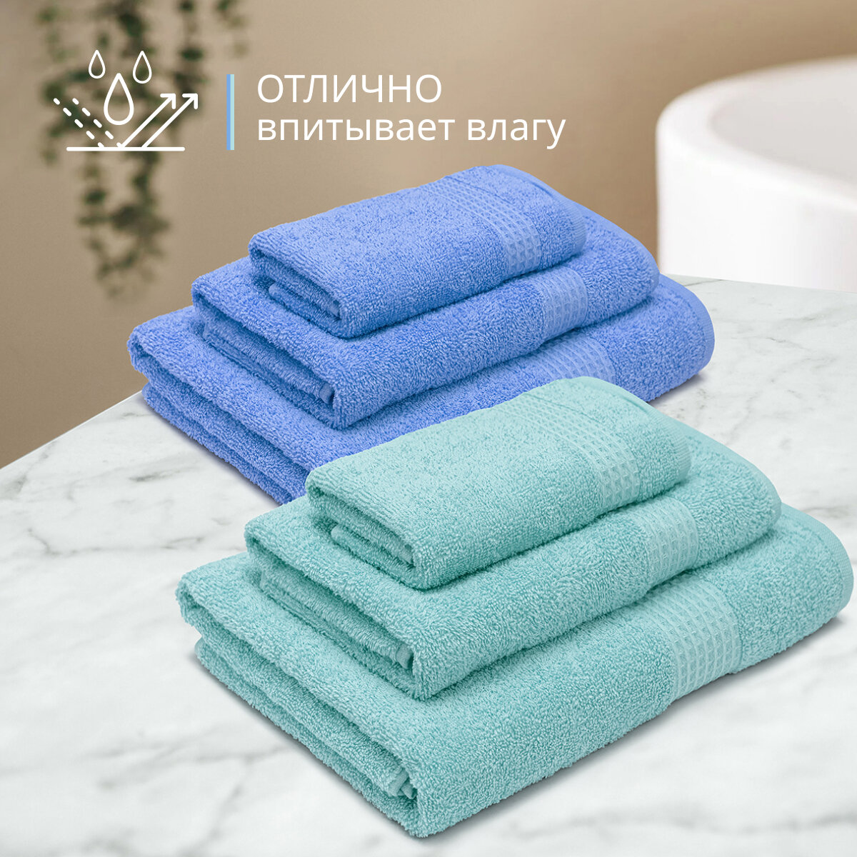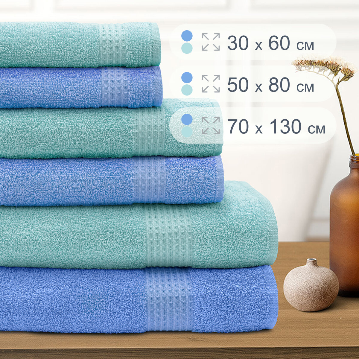 Купить Большой набор махровых полотенец для всей семьи Самур - 6 штук (2 больших, 2 средних, 2 маленьких) синий, аква / хлопок / подарок