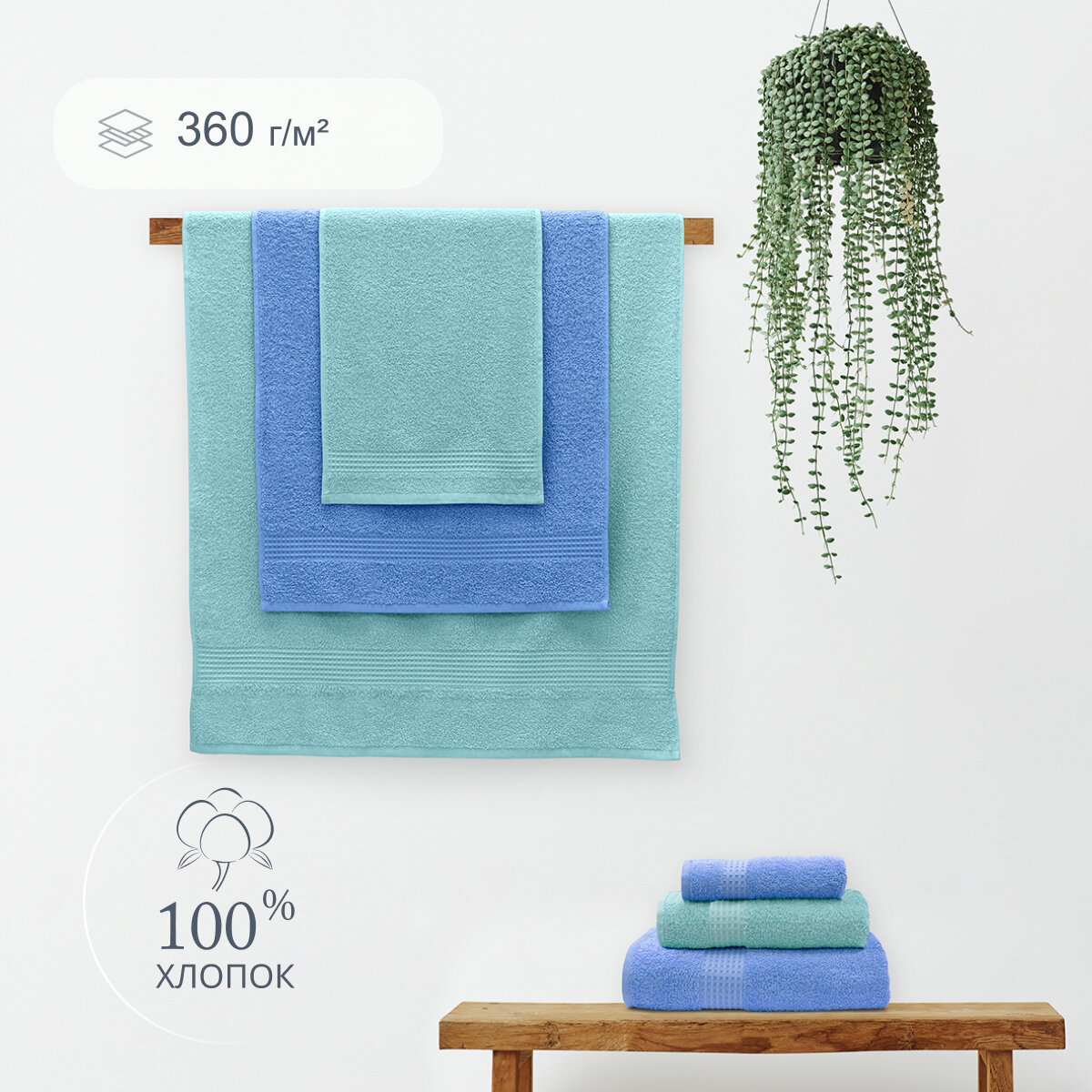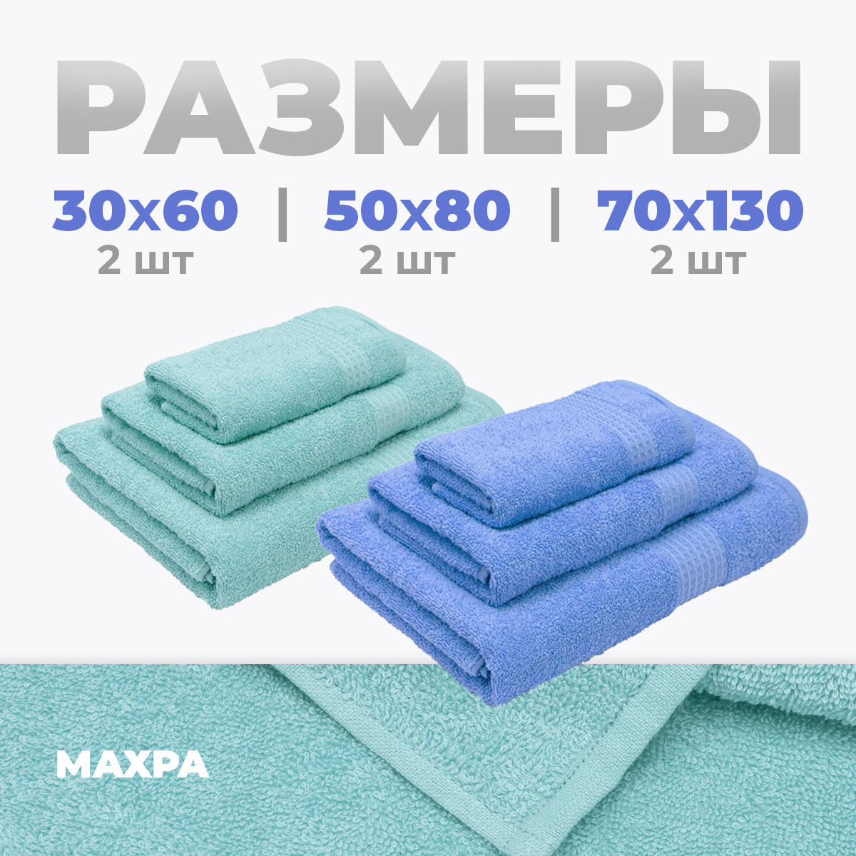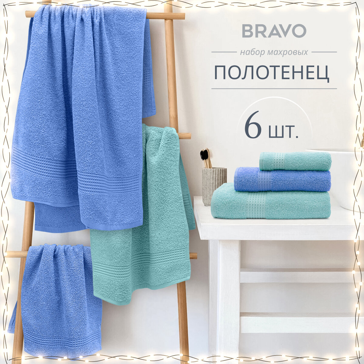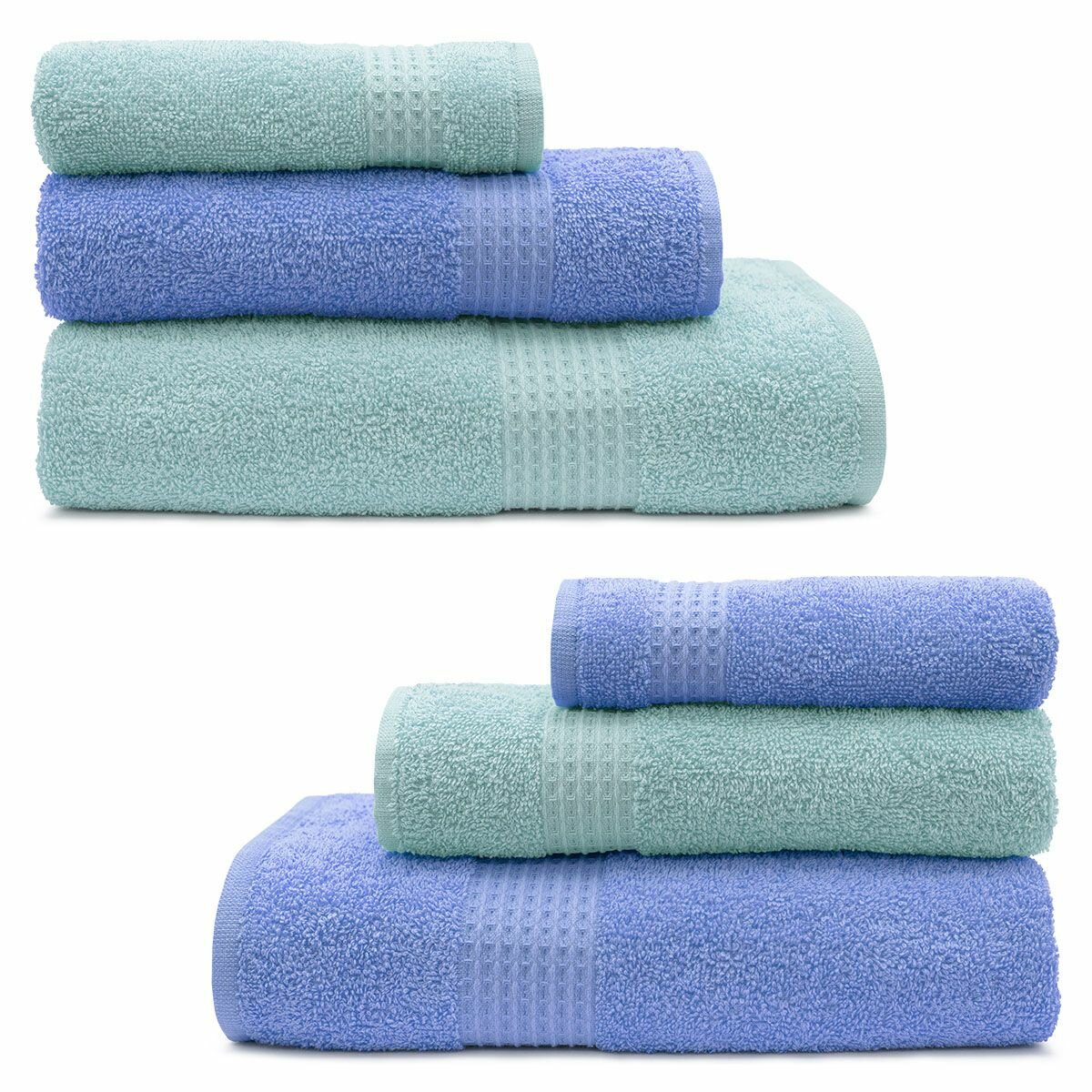Купить Большой набор махровых полотенец для всей семьи Самур - 6 штук (2 больших, 2 средних, 2 маленьких) синий, аква / хлопок / подарок