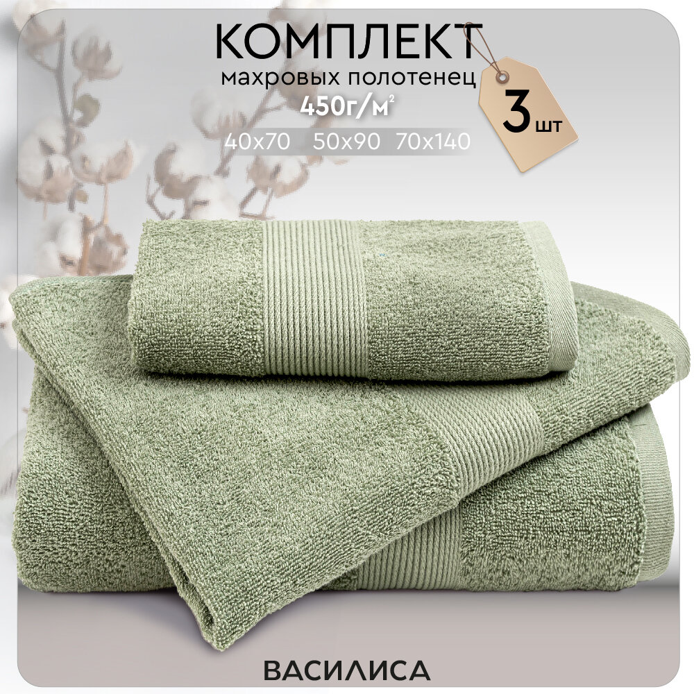 Набор банных полотенец "Василиса" Венеция 40х70, 50х90,70х140, 3шт, 100% хлопок, Фисташка